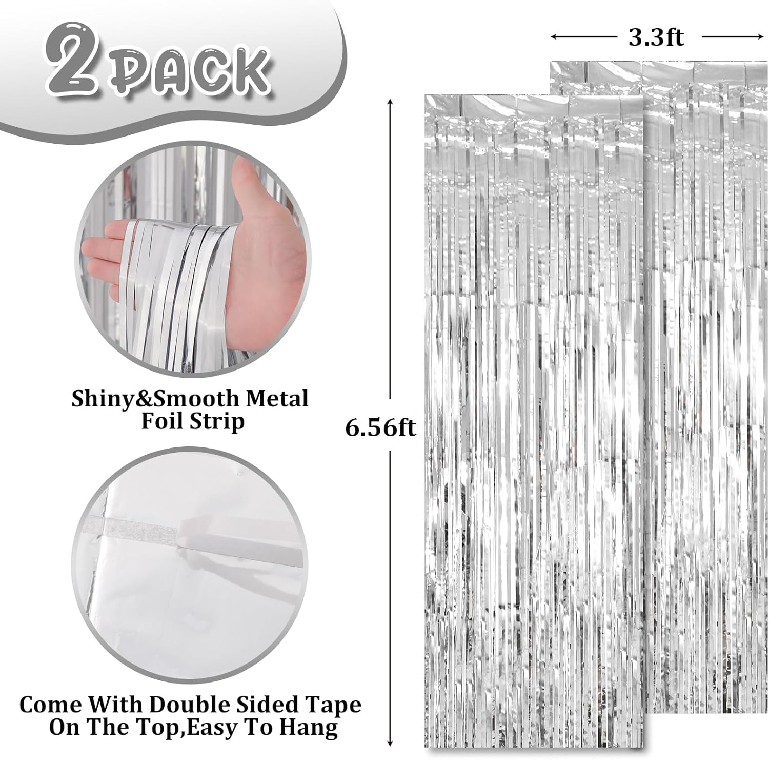 - Stunning Decorative Set: You'll receive 2 pcs laser silver foil fringe backdrop curtains, each measuring 3.28 ft (wide)Γ6.56 ft (drop). Enough length foil fringe curtains backdrops are perfect for the door or wall to create an impressive decoration
