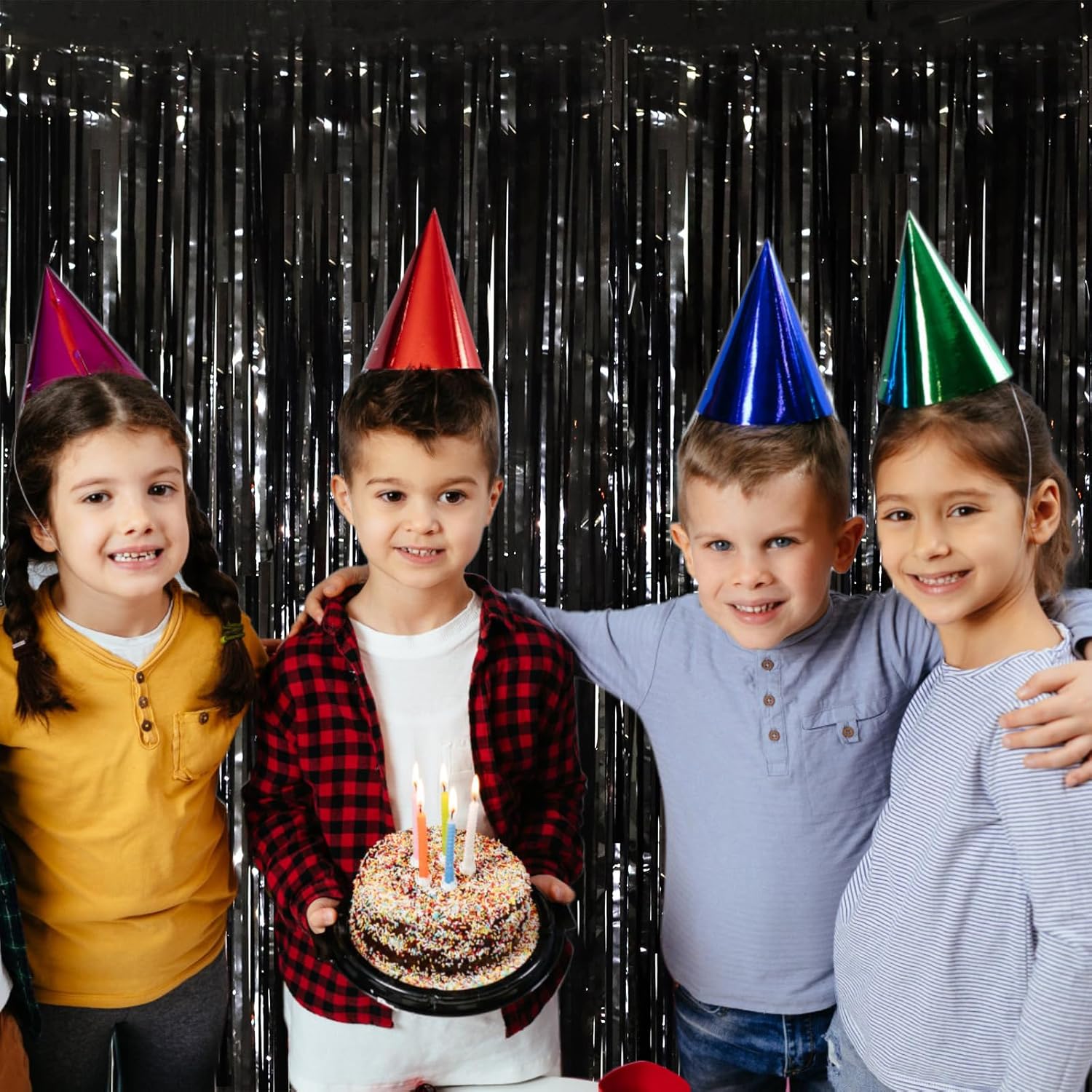 - Premium Quality: Crafted from shiny PET tinsel, these black fringe curtains are designed to be light weight, easy to hang, and resistant to wear and tear. The metallic party streamers reflect light beautifully, creating a mesmerizing visual effect