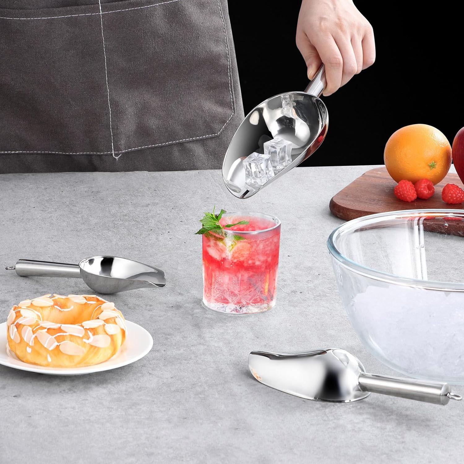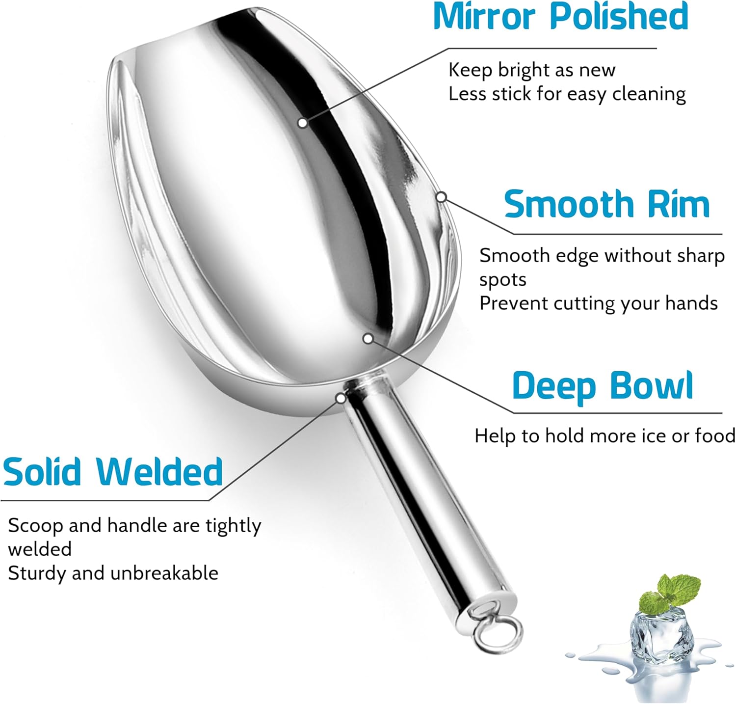 - 【Easy to Clean】Stainless steel ice scoop is polished with mirror finish, Easy to clean by hands, Can easy rinsing under the running water, Or use sponge to wash them in the soapy water, Our candy scoops always keep shiny surface after washing, Dishwasher safe to save your time and effort