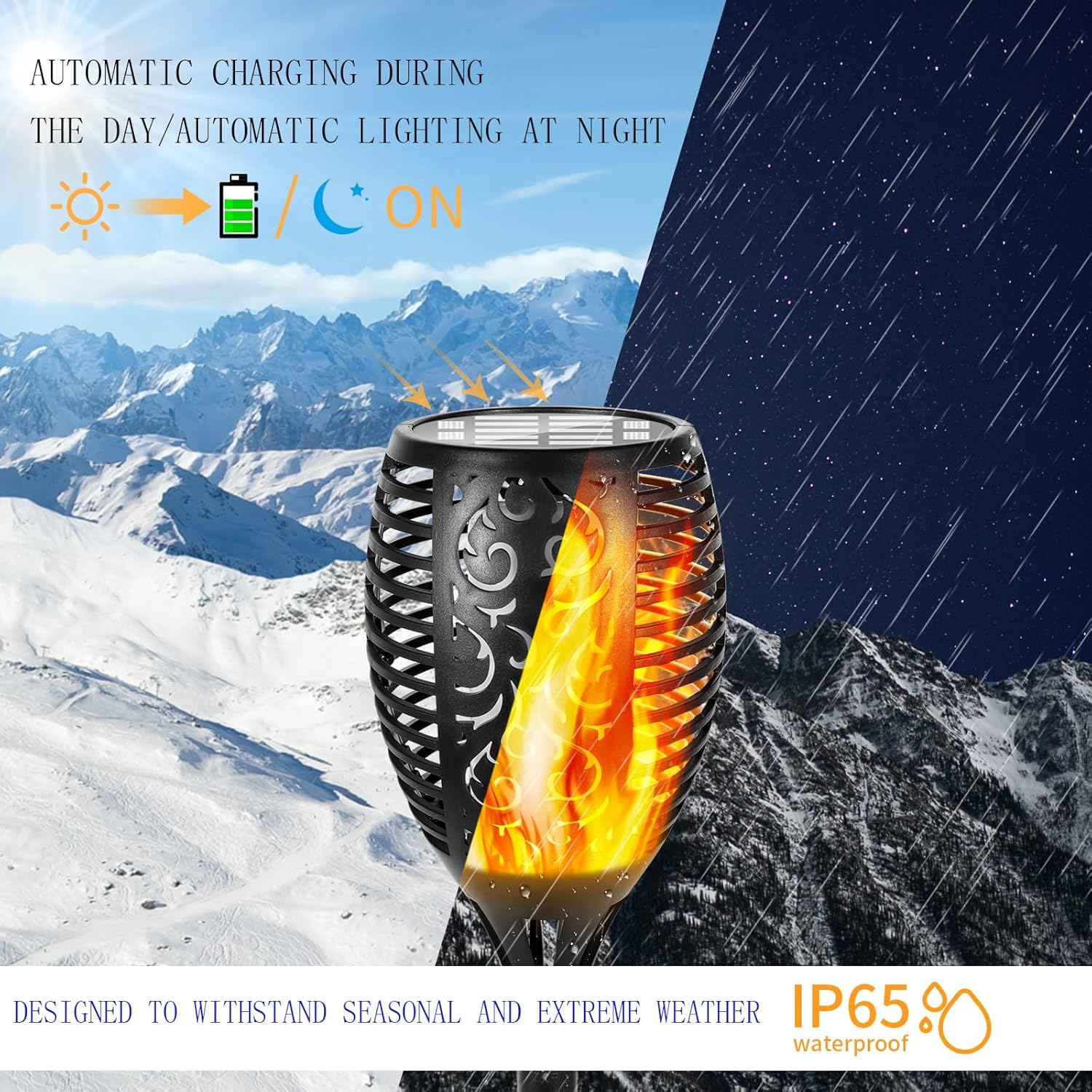 I-SHUNFA 96 LED Outdoor Waterproof Solar Torch Lights with 3 Modes—Flickering Flame, Fade Effect, or Full Brightness Automatic On/Off Landscape Decorations and Security Lights (4, Warm)