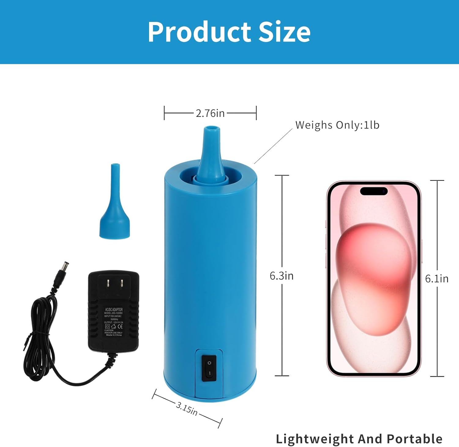 Electric Balloon Pump, Air Pump - Portable Inflator, Air Pump for All Balloons, Long Animal Twisty Curly Balloon, Foil Balloons, Inflador De Globos for Birthday Party, Kids' Party (Sky Blue)