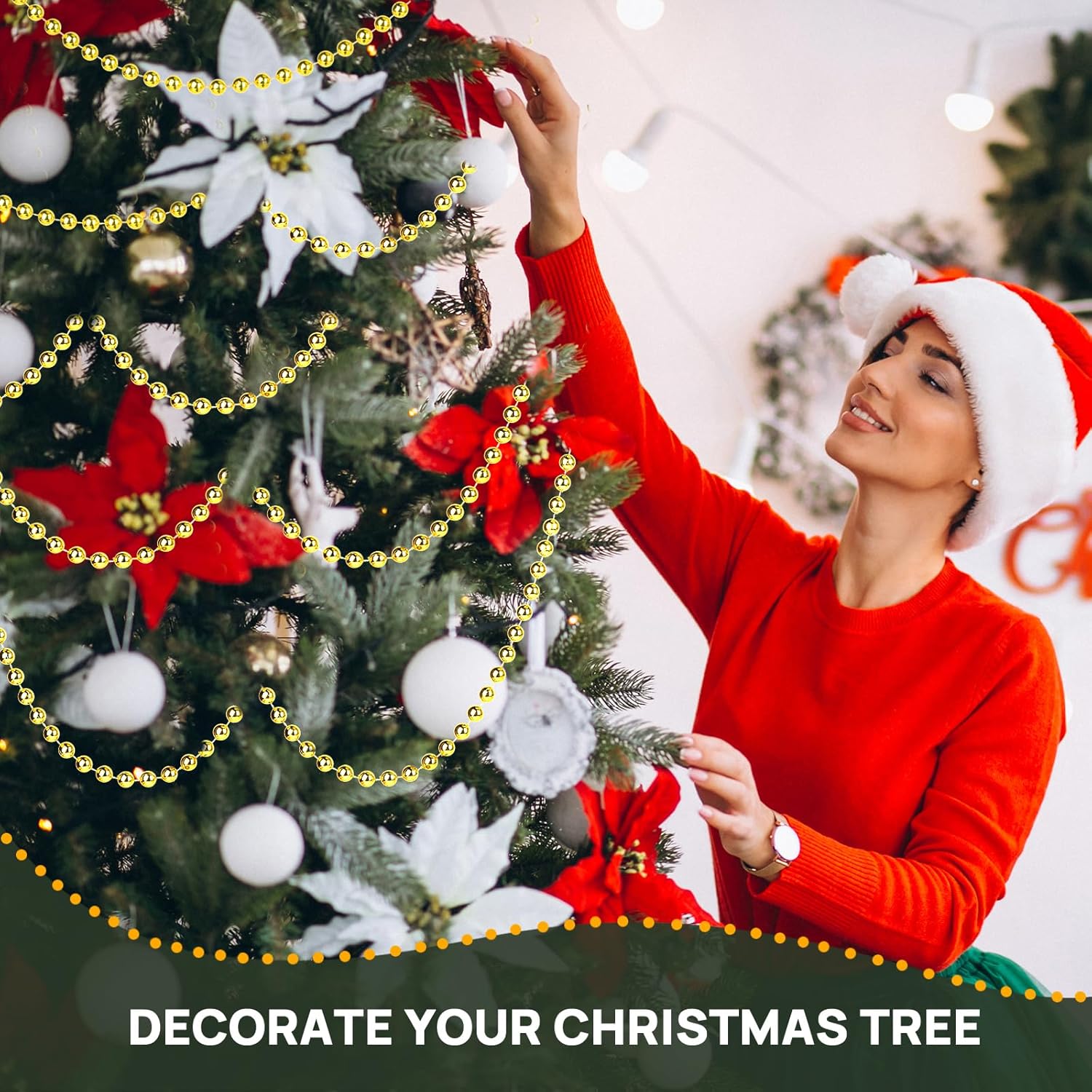 - Customizable Elegance - You can easily trim the pearl garland for decorating to any desired length, and the faux gold beads are tightly attached to the string and won't come off easily, ensuring a solid and long-lasting decorative effect