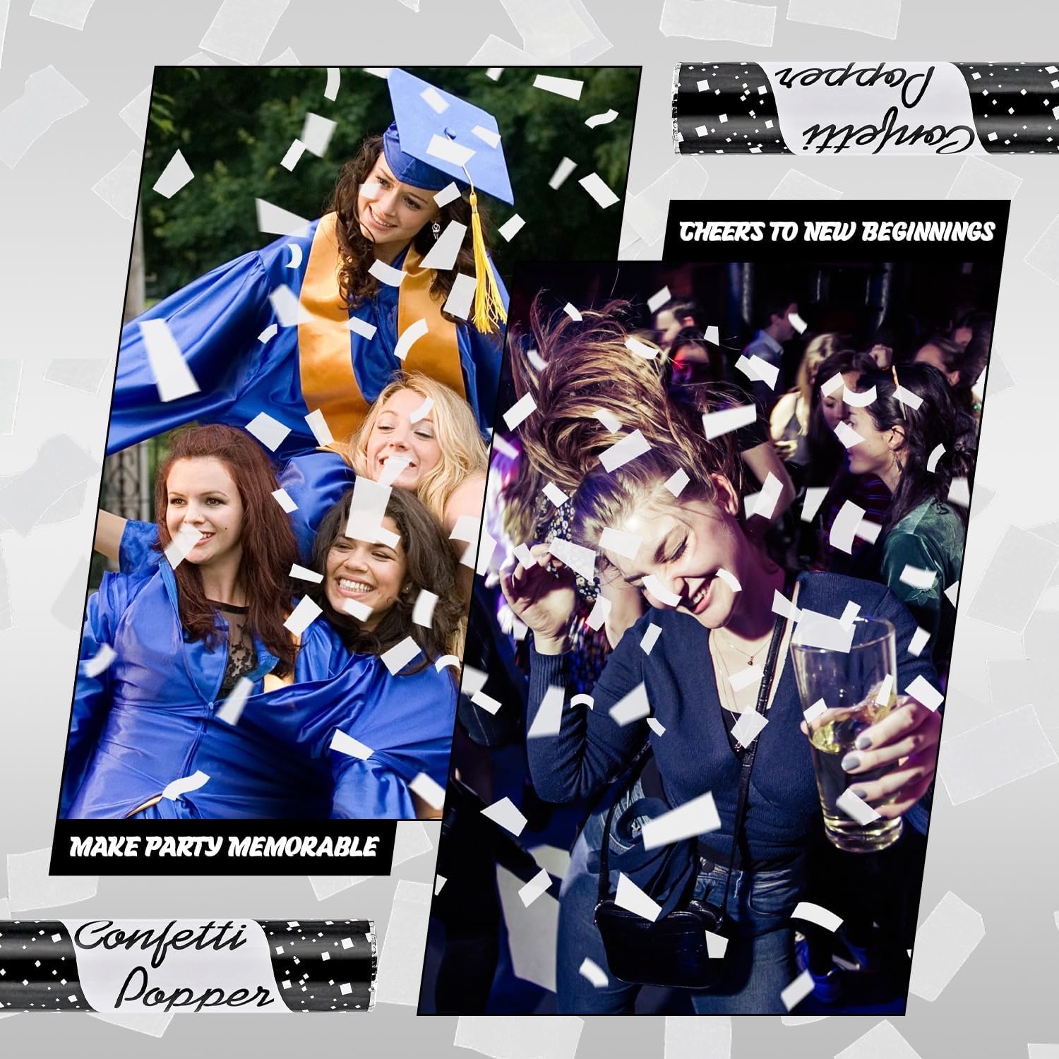 - 【Safe and Fun White Confetti Poppers】 Enjoy popping our White confetti poppers, made with safe, non-toxic materials. Our high-quality confetti cannons are safe for indoor and outdoor use, ensuring a wonderful and worry-free party experience for you and your guests.