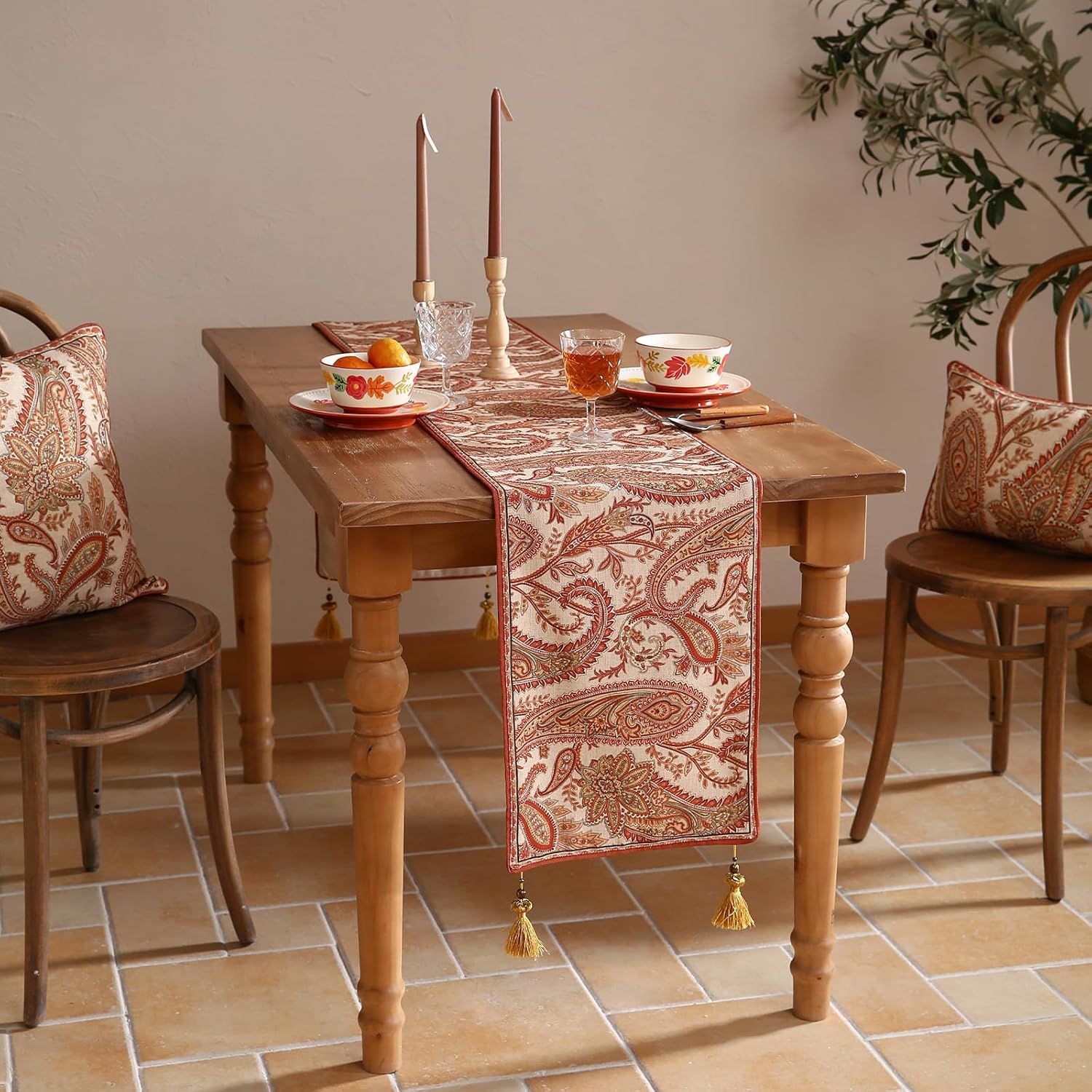 - Care Instructions:For table runners with tassels,hand washing or dry cleaning is recommended.Wash gently and air dry to maintain fabric quality.Table runners without tassels can be machine washed on a gentle cycle.After washing,they can be tumble dried on low heat; ironing is optional.Do not use bleach,as it may damage the fabric.