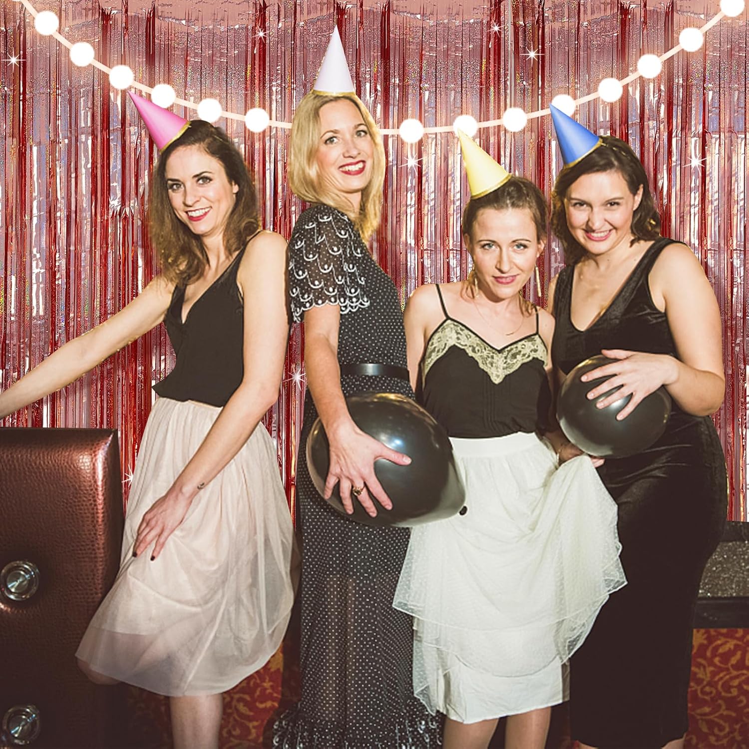 - Material: This tinsel backdrop is made of high-quality shiny tinsel. Metallic streamers are available in a variety of beautiful colors with a shiny, iridescent, and reflective surface that creates an eye-catching and mesmerizing effect. Sparkle and bling will definitely create a shiny nice atmosphere for your party.