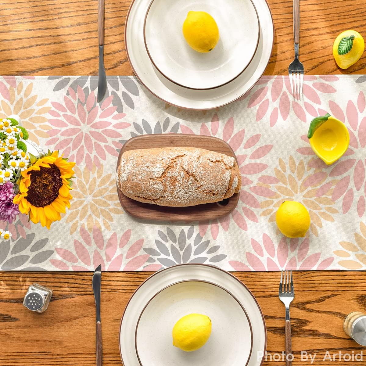Artoid Mode Pink Dahlia Floral Pinnata Summer Table Runner, Spring Kitchen Dining Table Decoration for Home Party Decor 13x36 Inch