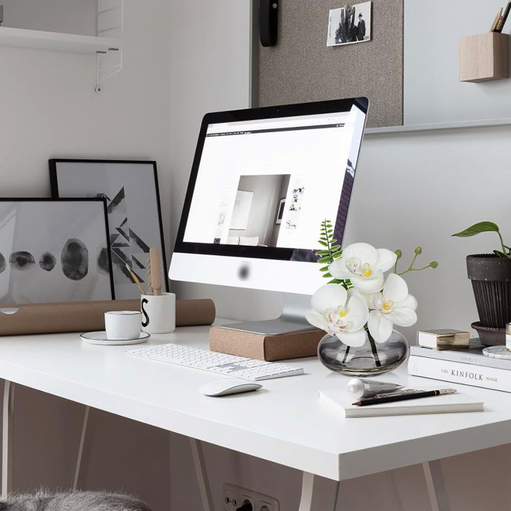 - Perfect Size - Overall height of the faux orchids in pots is 6.3", and the flower vase size is 3.5"(D)x2.4"(H), the mini orchid, buds,branches, fern leaf of the orchid centerpieces for tables can be bent and reshaped to a certain extent, its small size can place on any corners