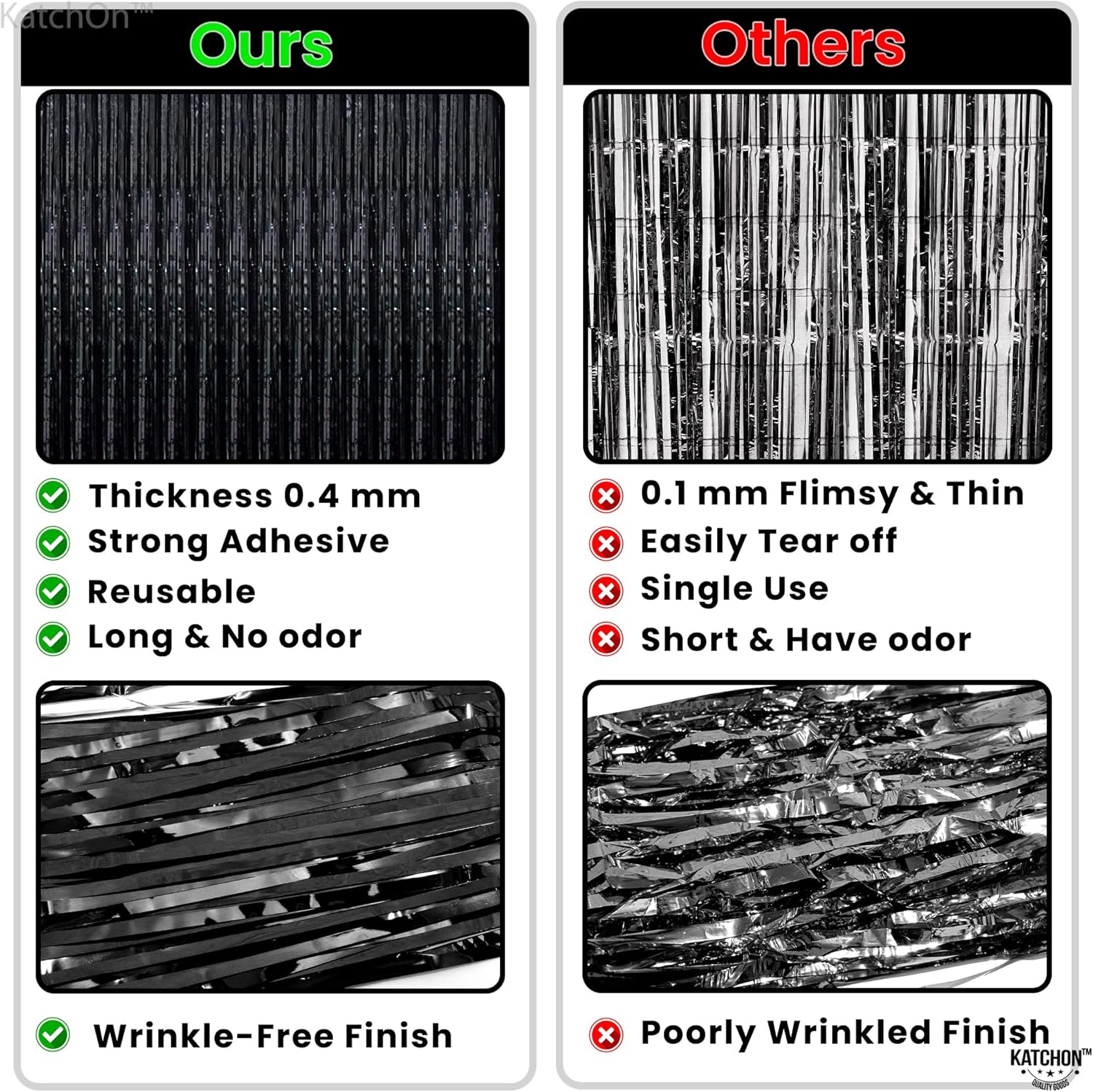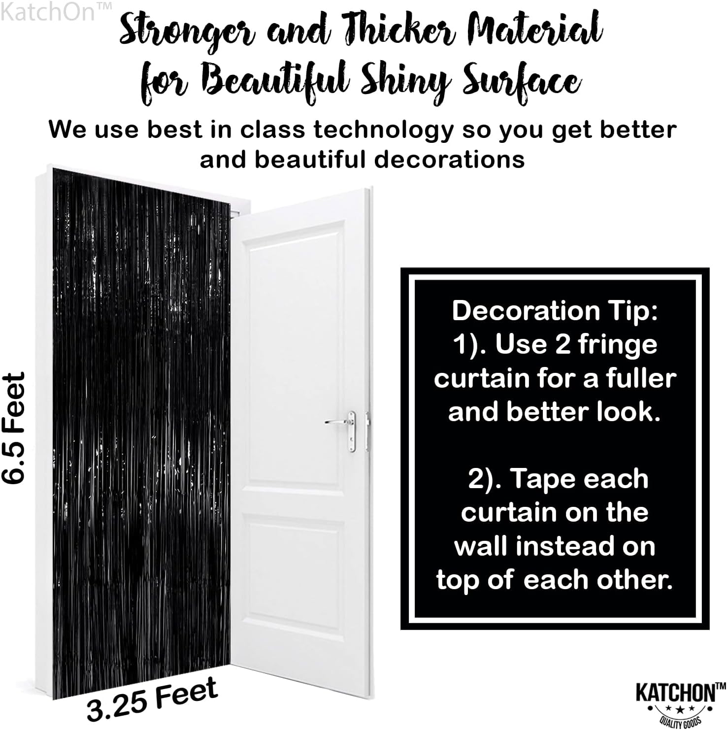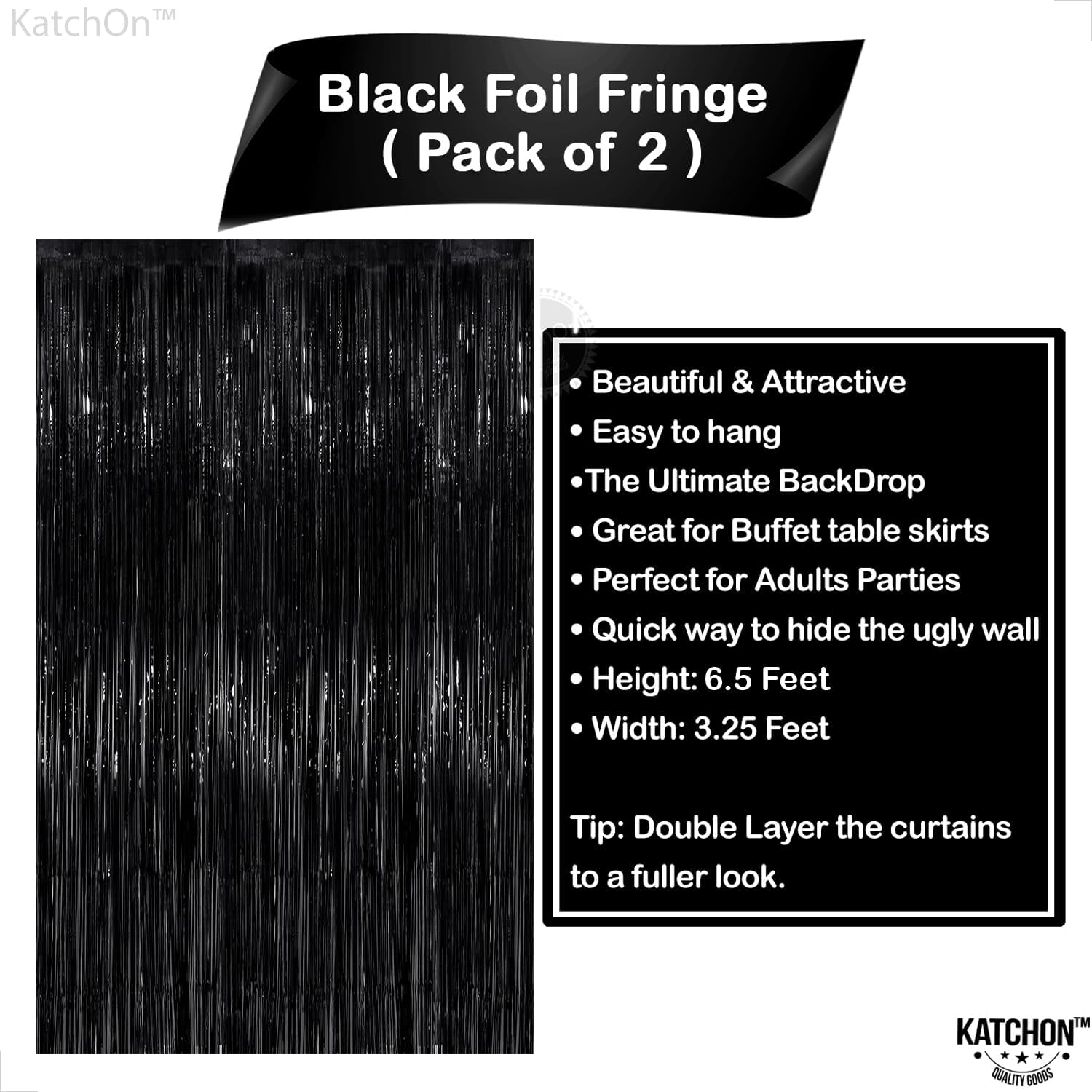 - PREMIUM QUALITY MATERIAL β Our black fringe backdrop decorations is crafted from premium-grade foil for a shimmering finish that looks amazing in photos. Lightweight yet strong, itβs versatile for birthday decorations for men, anniversary decorations, engagement decorations, or themed events. Use as a black tinsel foil decorations backdrop, pair with balloons for black bow birthday decorations, halloween birthday party decorations or style with metallics for a classy black party decorations setup.
