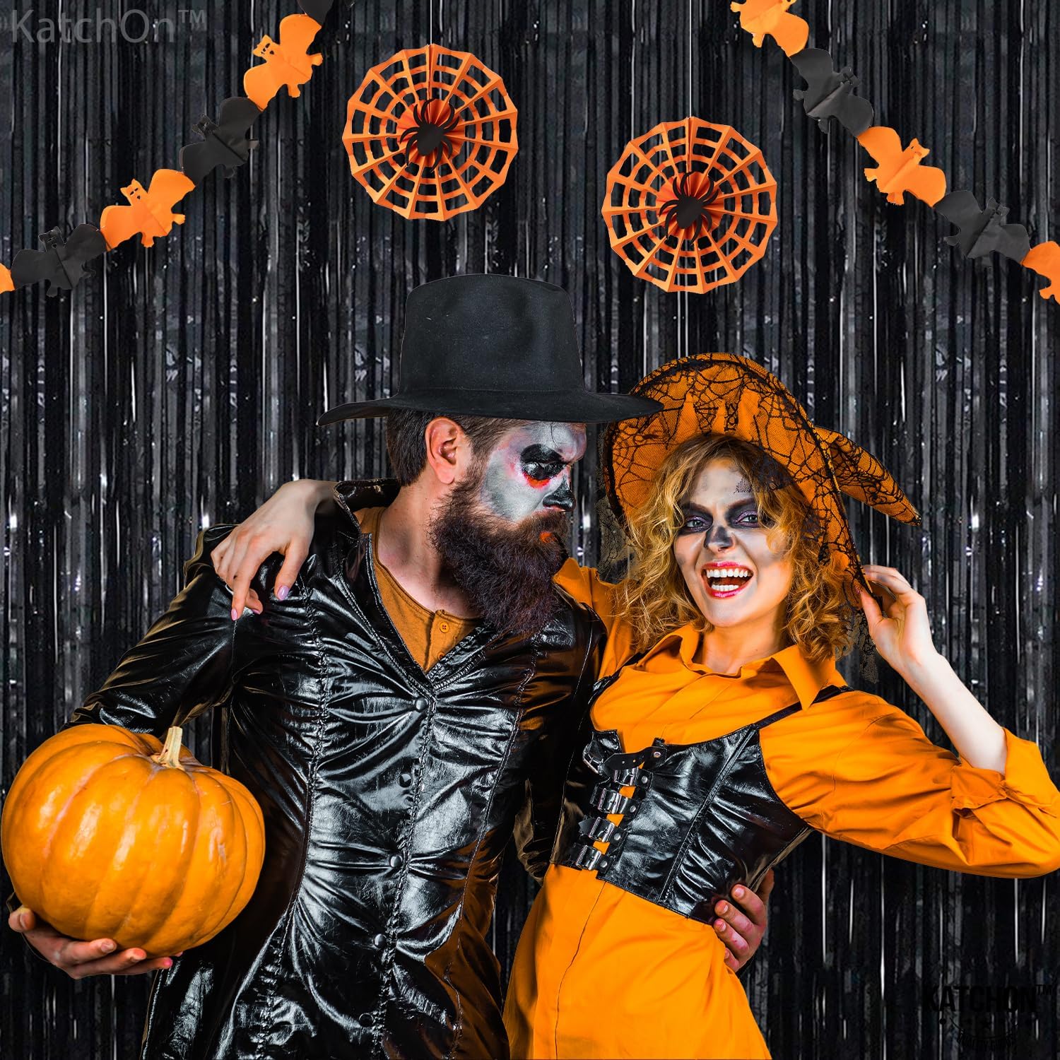 KatchOn Large Black Fringe Backdrop - Pack of 2 | Black Streamers for Halloween Party Decorations | Tinsel Backdrop for Wedding, Anniversary, Engagement, Birthday, Bachelorette Party Decorations