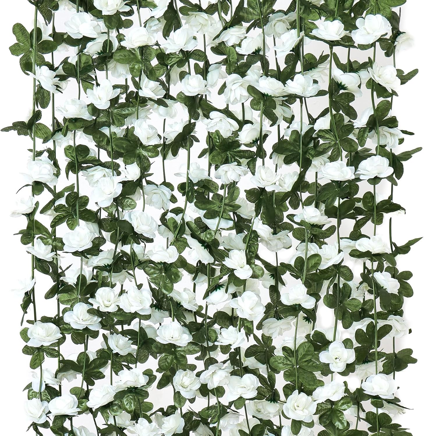 KHOYIME 9 Pack 72 FT Artificial Flower Garland, Fake White Roses Vines Silk Flowers Faux Plastic Outdoor Hanging Floral Ivy Garland Decoration for Wedding Arch Bedroom Home Wall Backdrop Room Decor