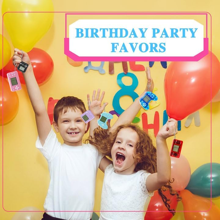 36 Pack Video Game Keychain Mini Square Handheld Video Game Key Chain for Kids Birthday Video Game Party Favors