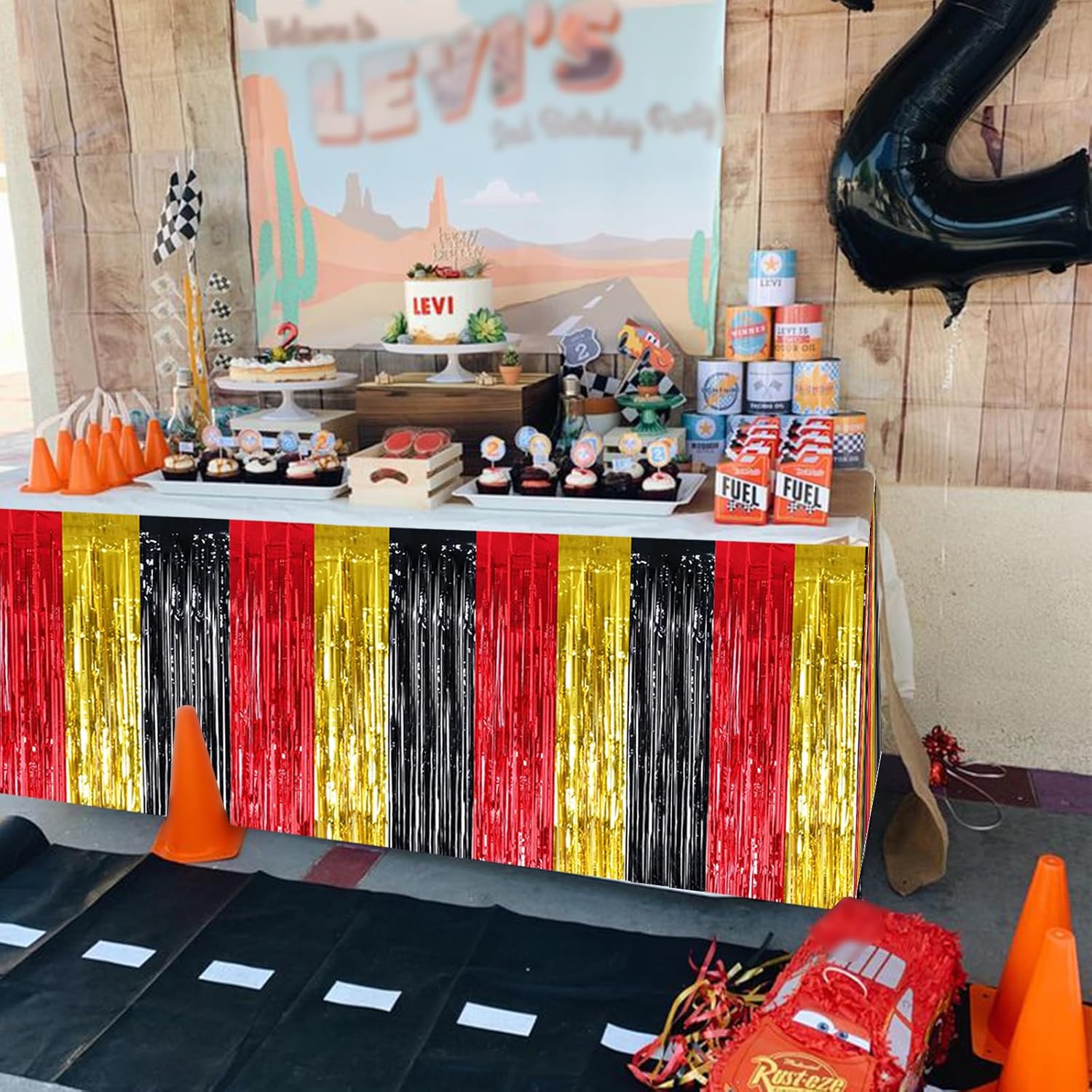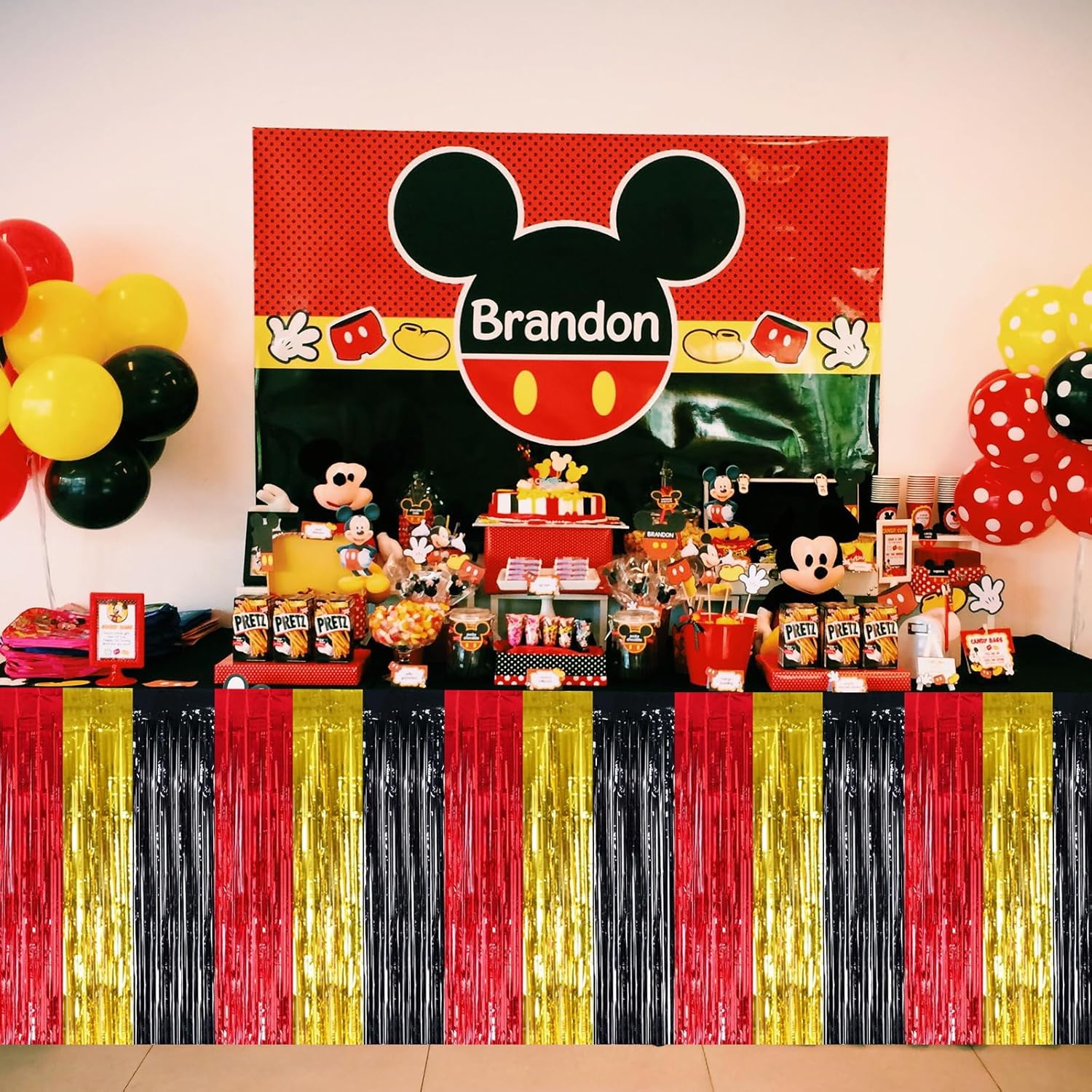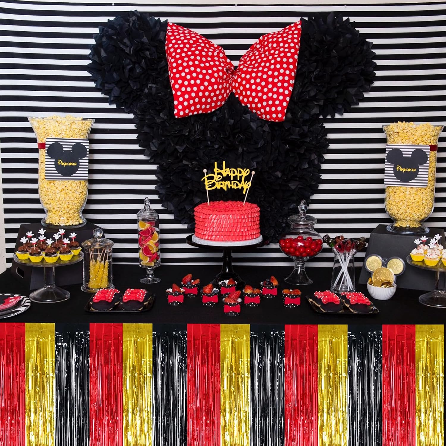 BEISHIDA 2 Pack Red Gold Black Table Skirts Party Decorations Metallic Tinsel Foil Fringe Decors for Rectangle and Round Table Graduation Casino New Year Mouse Theme Birthday Party Decorations