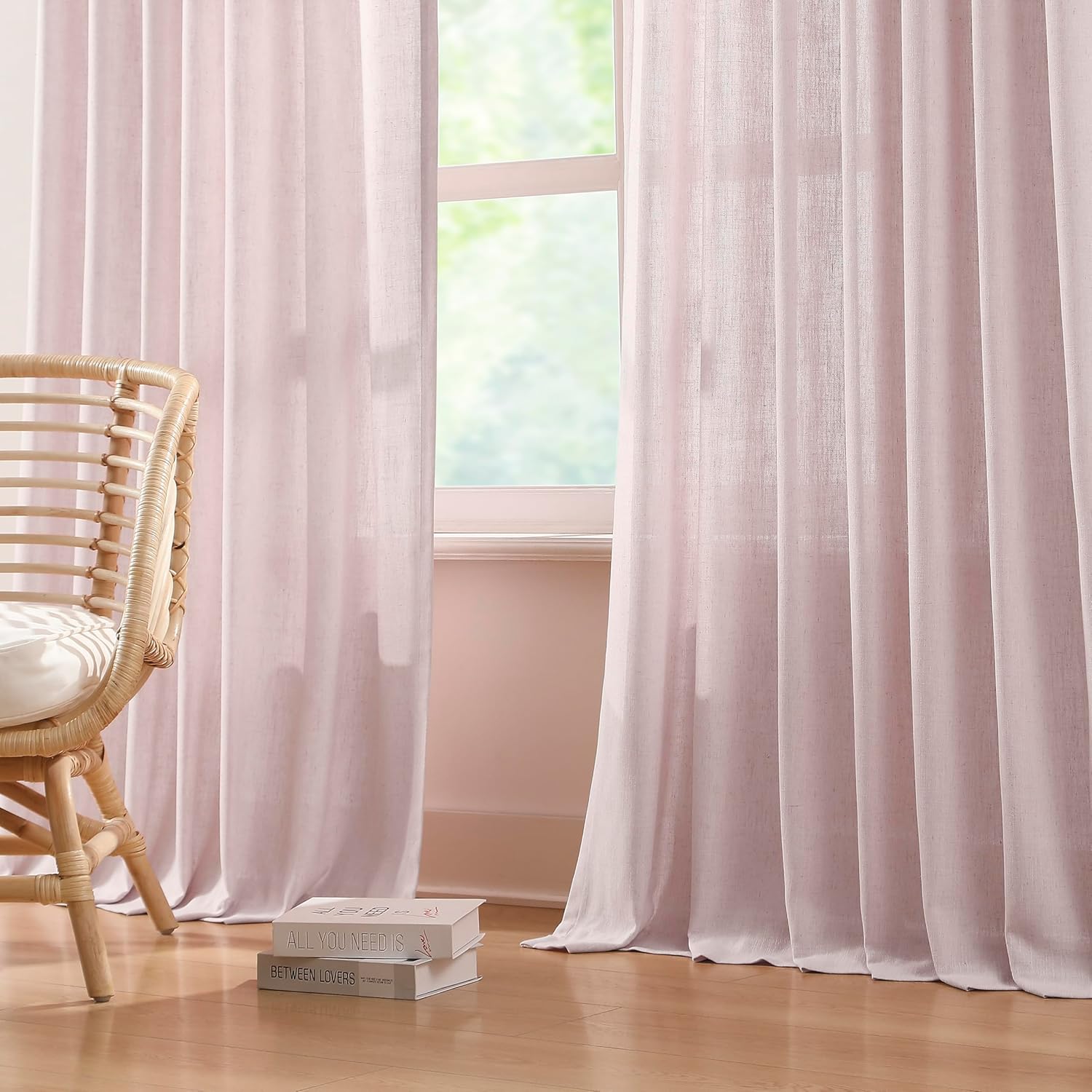Vision Home Soft Pink Pinch Pleated Semi Sheer Curtains Textured Linen Blended Light Filtering Window Curtains 95 inch for Living Room Bedroom Pinch Pleat Drapes with Hooks 2 Panels 40" Wx95 L