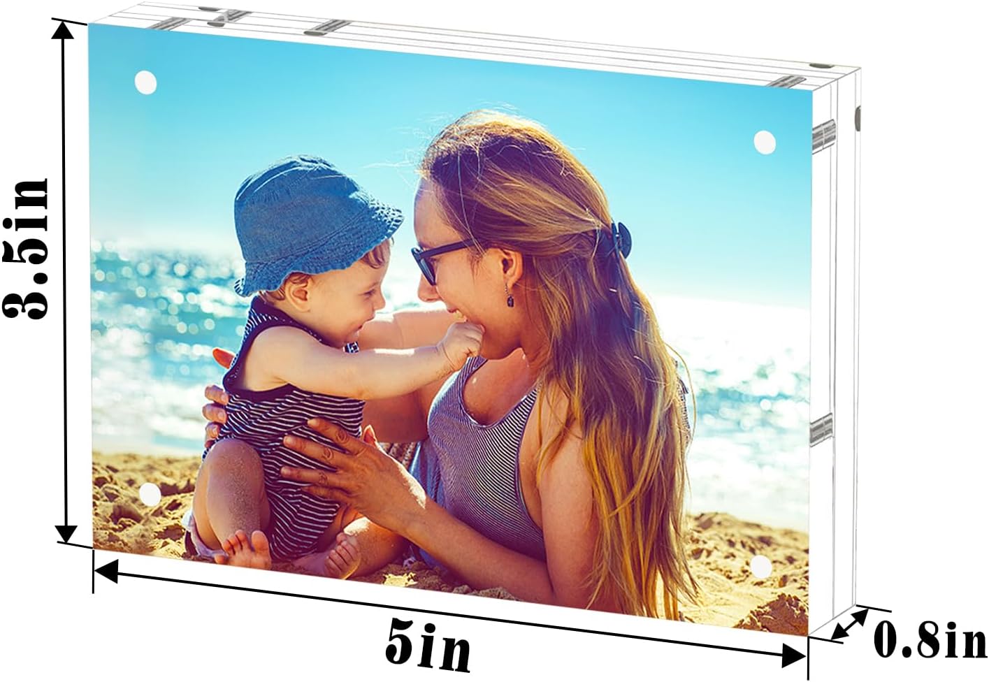 HELPLEX Acrylic Frame, 5 Pack 3.5x5 Acrylic Picture Frames, 20mm Thicker Frameless Clear Frame Double Sided Magnetic Frame, Free Standing Desktop Display Stand Acrylic Frames, 3.5x5(5 PACK)
