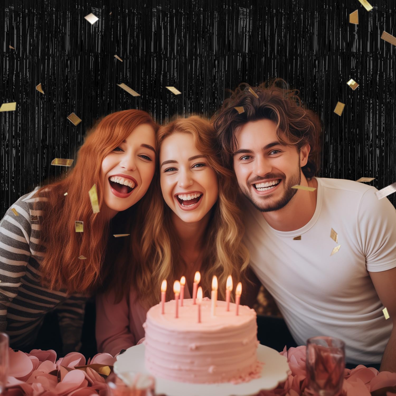 3 Pack Foil Fringe Backdrop - Black Shiny Tinsel Curtains for Party Decoration/Photo Booth Props - 3.3x8.2 FT Metallic Foil Backdrop for Birthday, Wedding, Graduation, Christmas.