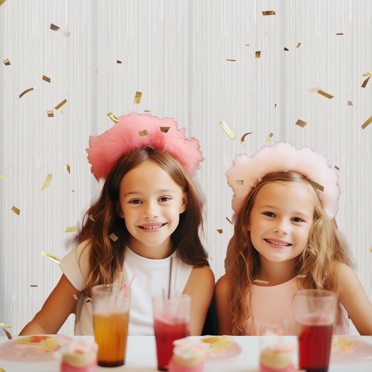 3 Pack Foil Fringe Backdrop - White Shiny Tinsel Curtains for Party Decoration/Photo Booth Props - 3.3x8.2 FT Metallic Foil Backdrop for Birthday, Wedding, Graduation, Christmas.