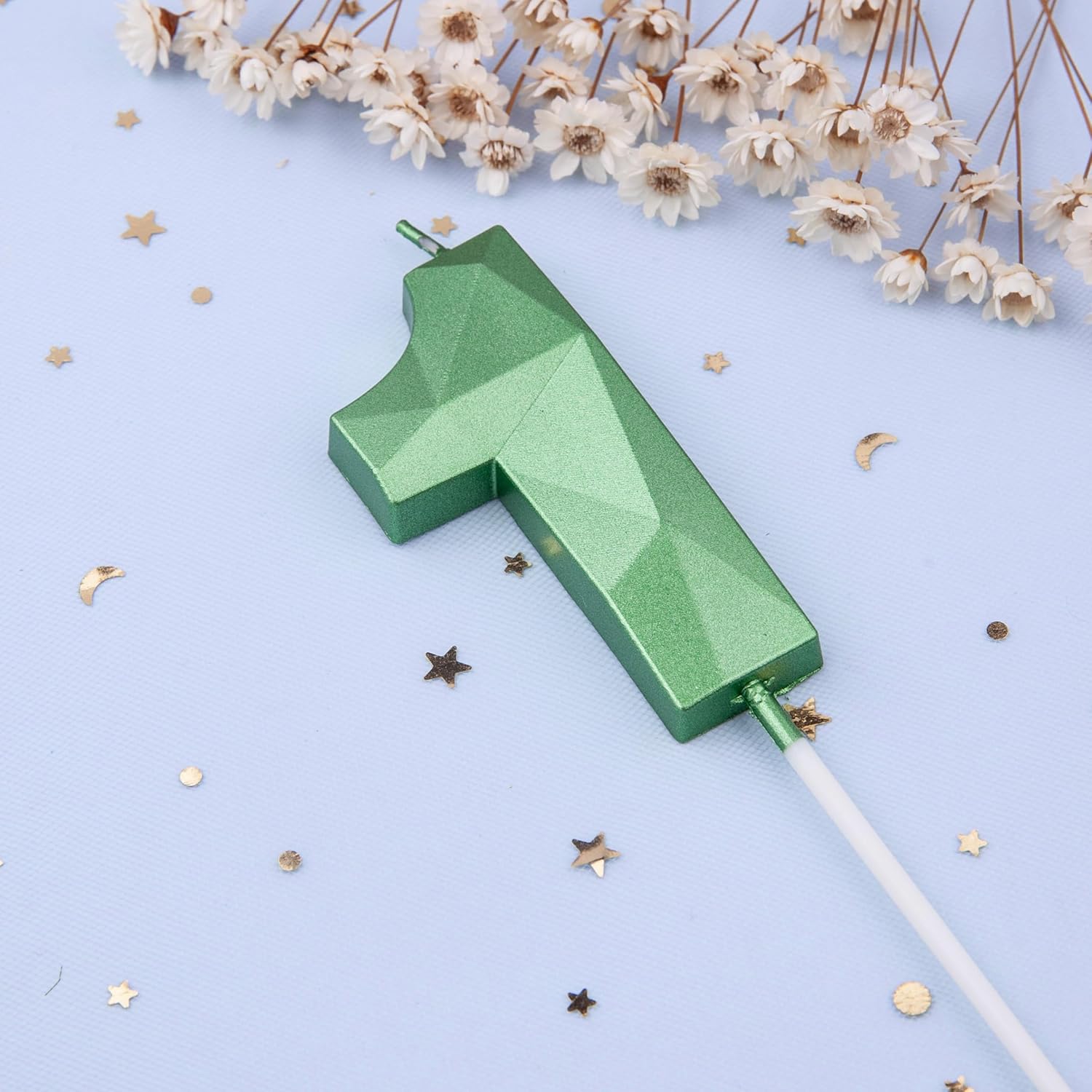 PHD CAKE 2.76 Inch Crystal Green 1 Number Cake Candle, Numeral Birthday Candles, Green Number Candles, Party Celebration