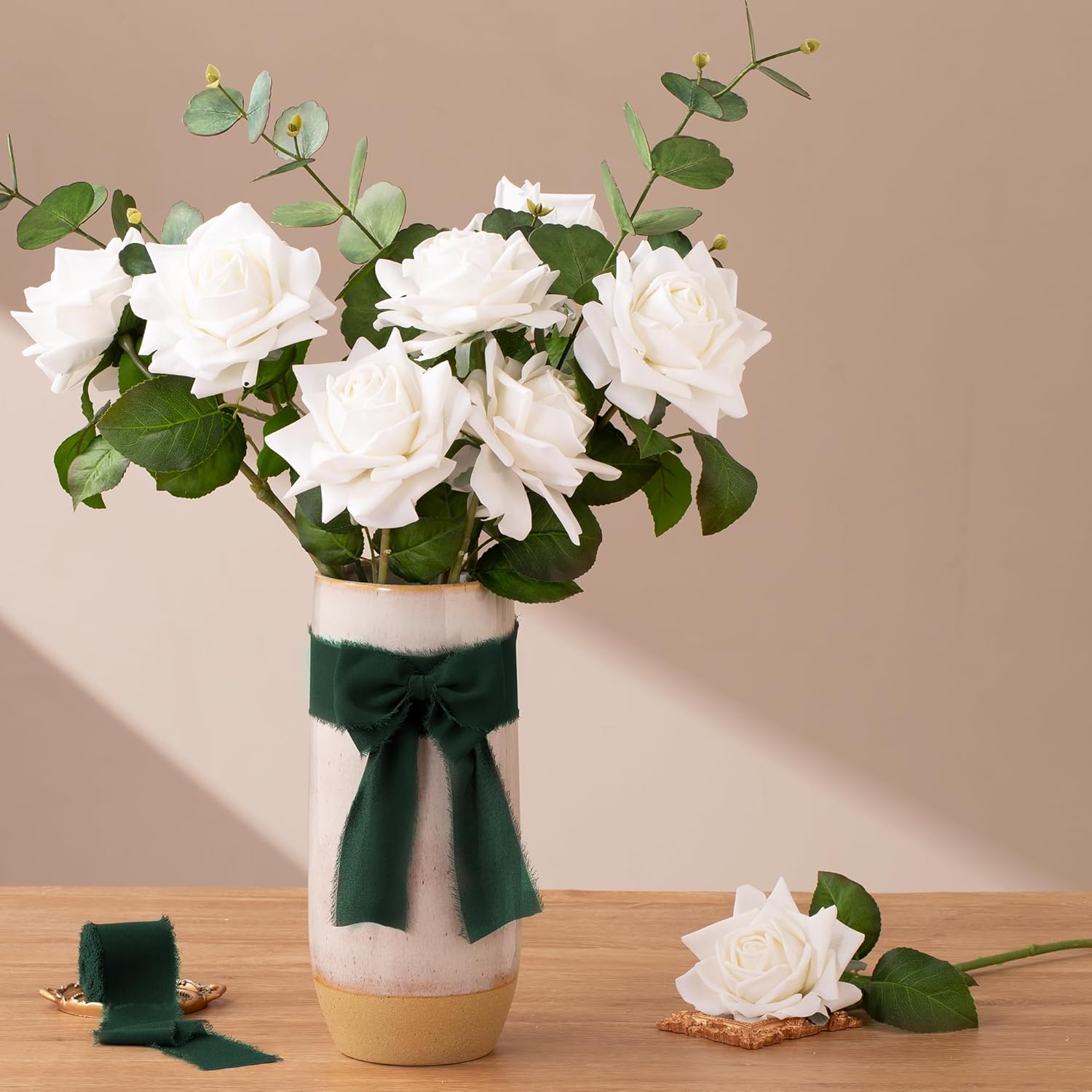 - 【Size and Color】Each roll of chiffon ribbon is 2 inches wide and 7 yards long, perfect for various creative uses such as making bows, decorating wreaths, and DIY crafts. This set includes dark green, sage green, and cream ribbons, one roll each. These vibrant frayed ribbons add a rustic charm to your creations, ideal for bouquet wrap or gift ribbon.
