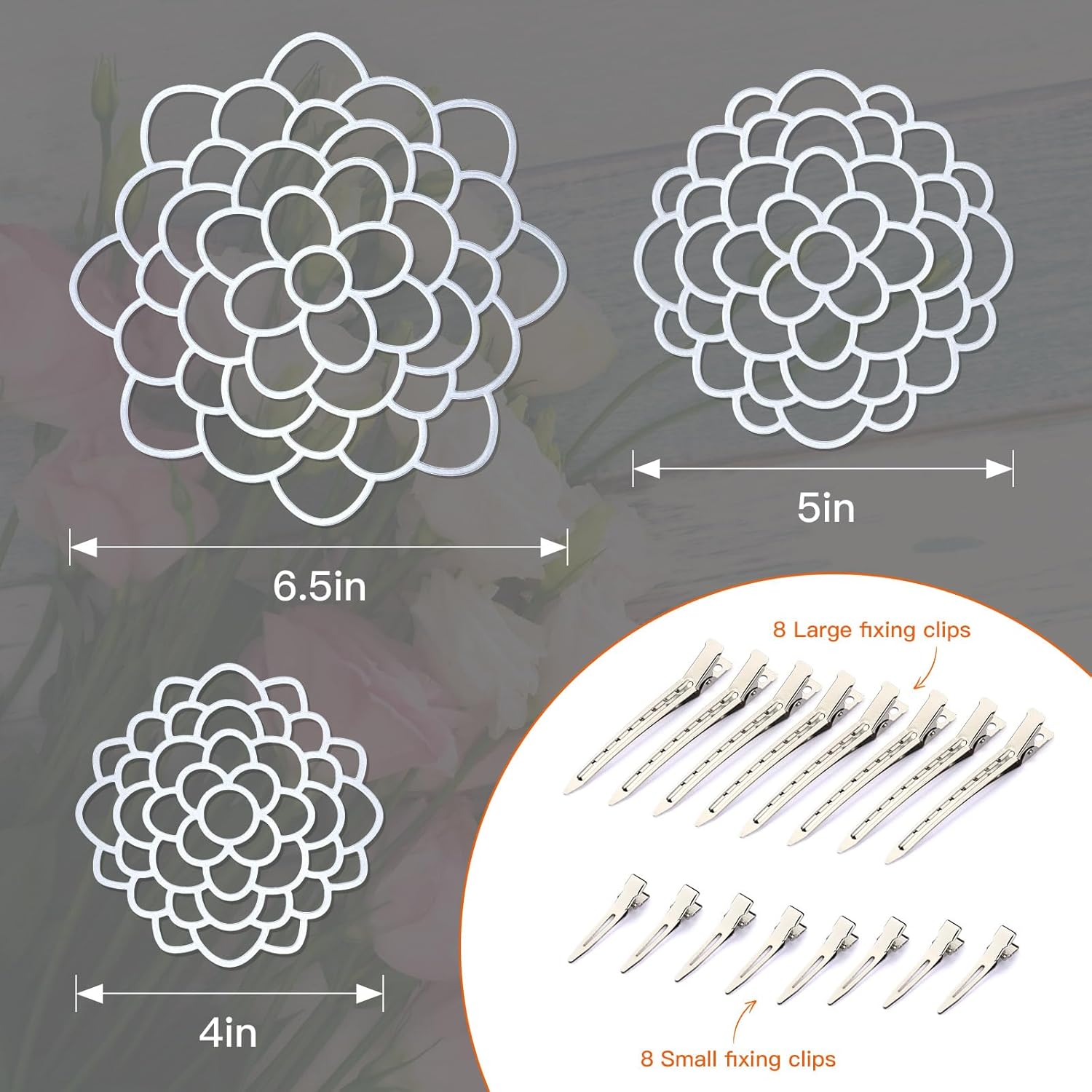 - Suitable Size: The size of this 3pcs metal flower arrangement lid is different, 44 inches/10.16 cm, 5 inches/12.7 cm, 6 inches/15.24 cm, which can fit the vast majority of vases, make it convenient for you to change and match at any time, to meet your needs.