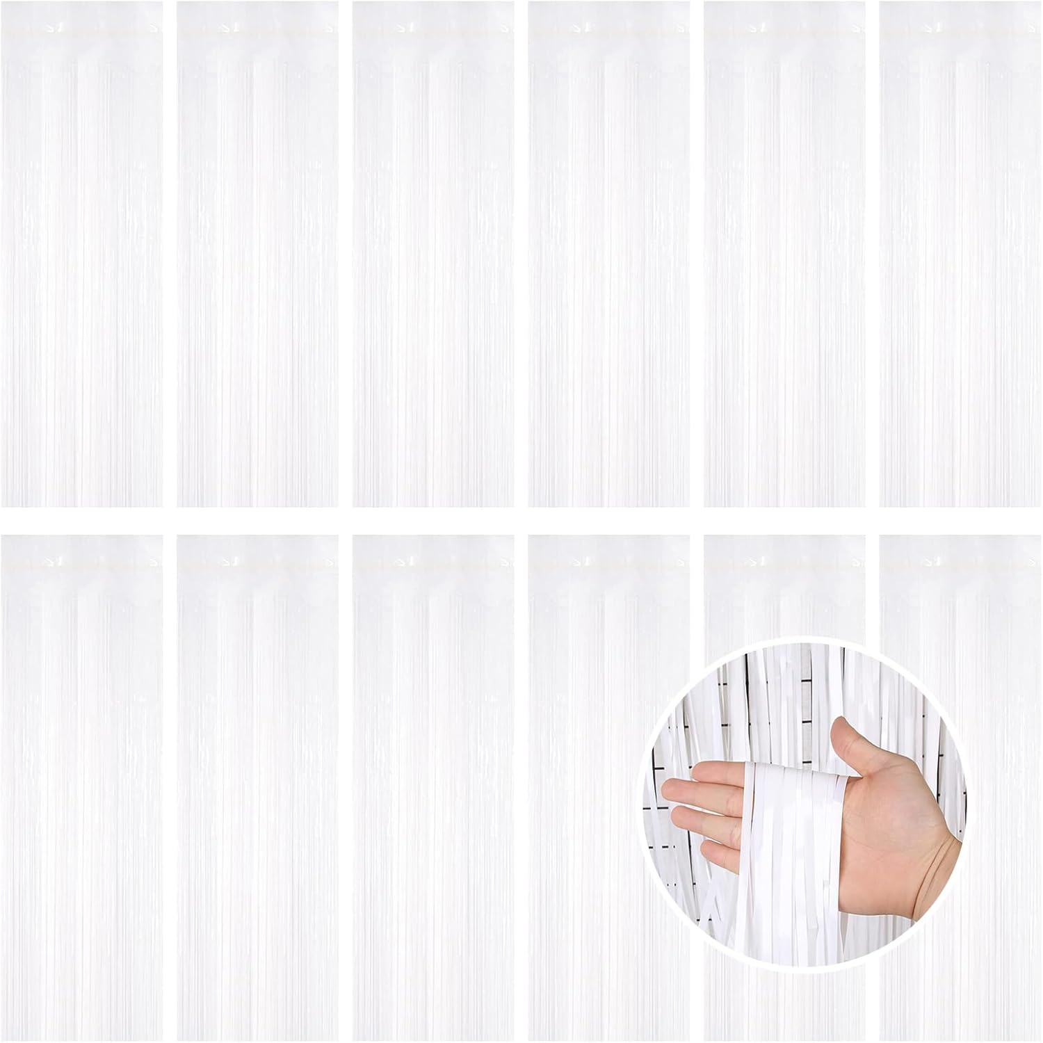 White Fringe Curtain Party Streamers, 12 Pack 3.3ft x 8.2 ft Foil Curtain Backdrop Tinsel Foil Fringe Curtains Photo Booth Backdrop Streamer for Birthday, Wedding, Baby Shower, Disco Party