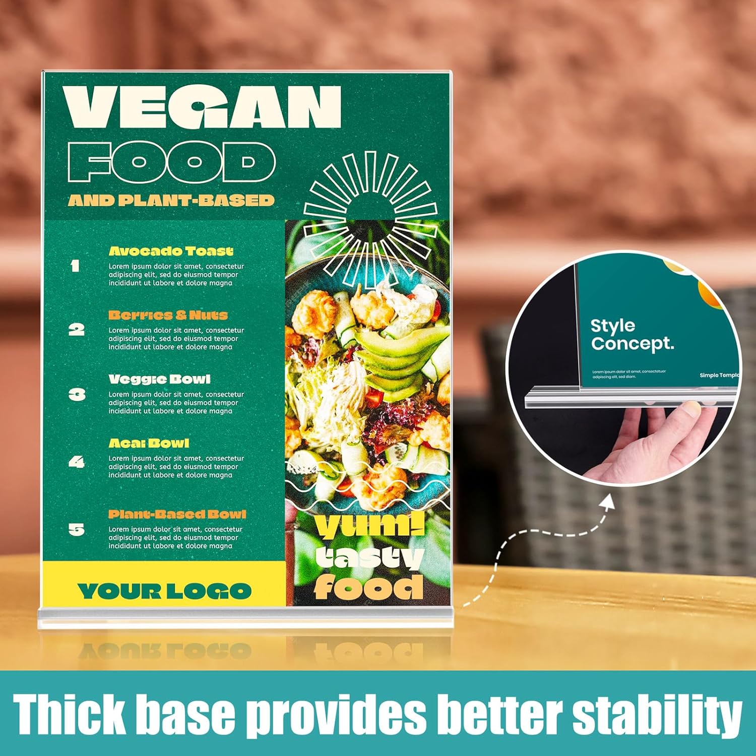 - Multifunctional Acrylic Stands for Display - 12-PACK 8.5x11 acrylic sign holder can meet your various daily needs. Not only can it be used to display menus and information promotion, but it can also be used as an acrylic picture frame to place your favorite photos.
