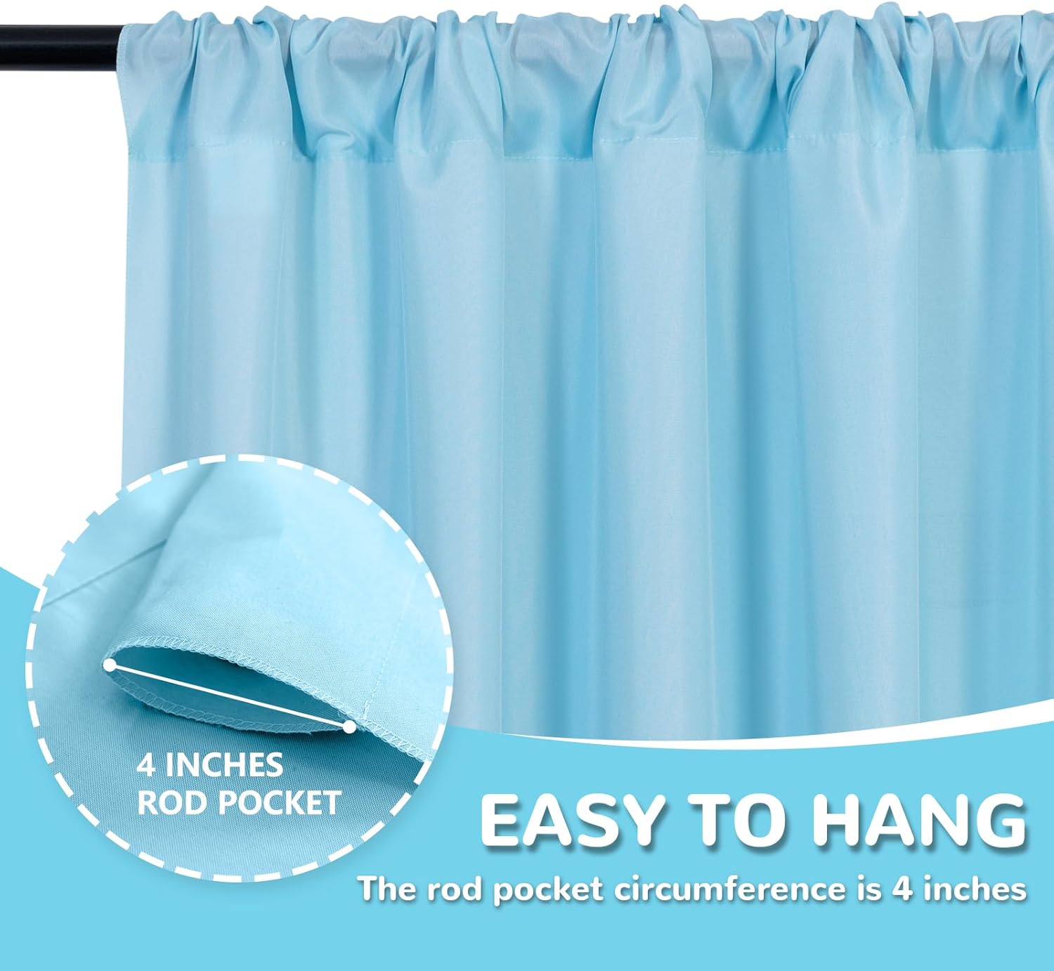 MEETSKY 10x 10 Baby Blue Backdrop Curtain for Baby Shower Parties Rod Pocket Light Blue Curtains Backdrop Drapes Fabric Decoration for Birthday Party Photography 5ft x 10ft,2 Panels