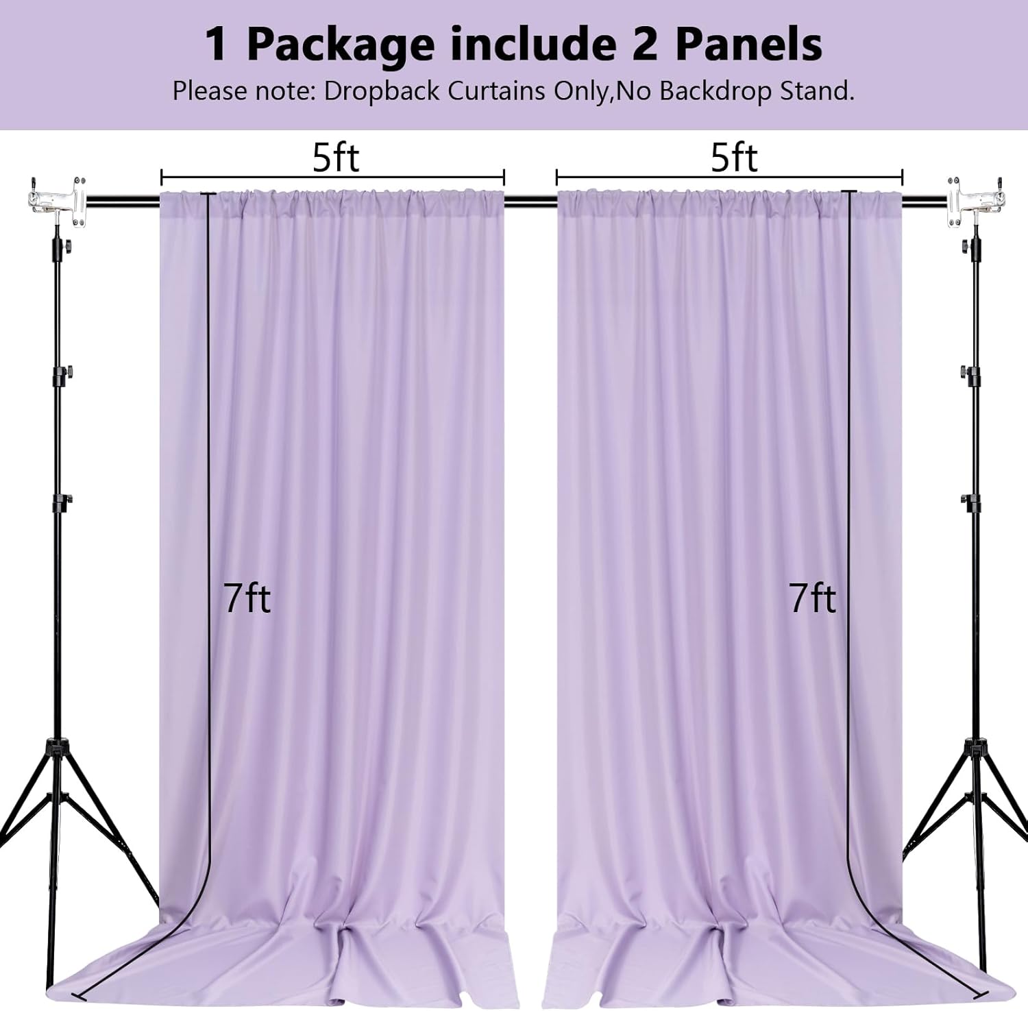 - DIMENSIONS: Each order is for 2 (two) polyester curtains. Each curtain measures 5 feet wide x 7 feet high. Entire backdrop measures 10 feet wide x 7 feet high.Each curtain panel comes with 4 inch rod pocket on top, fit up to any standard rods. (Please note: Dropback Curtains Only,No Backdrop Stand.)
