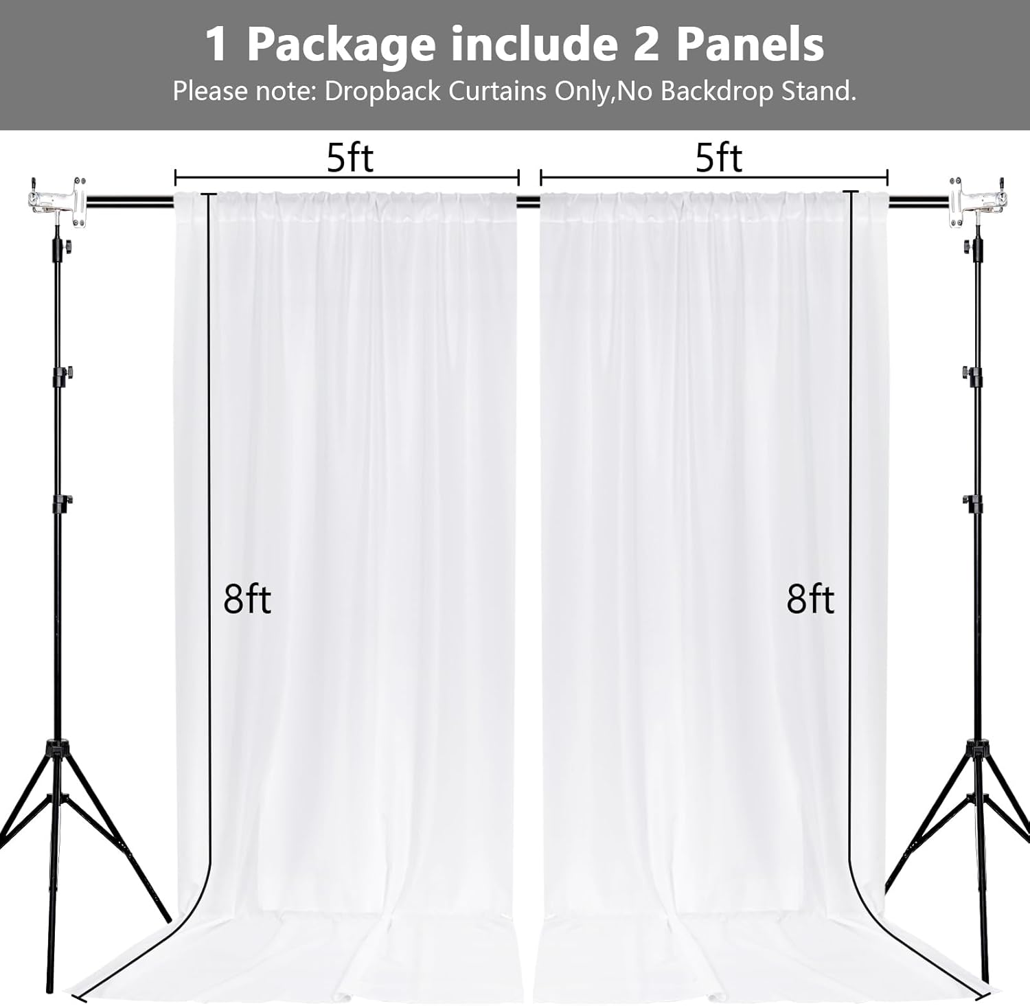 MEETSKY White Backdrop Curtains for Parties - 10ft x 8ft Wedding Photo Background Curtain Rod Pocket Fabric Drapes Panels for Birthday Holiday Party Home Decoration, 5ft x 8ft, 2 Panels