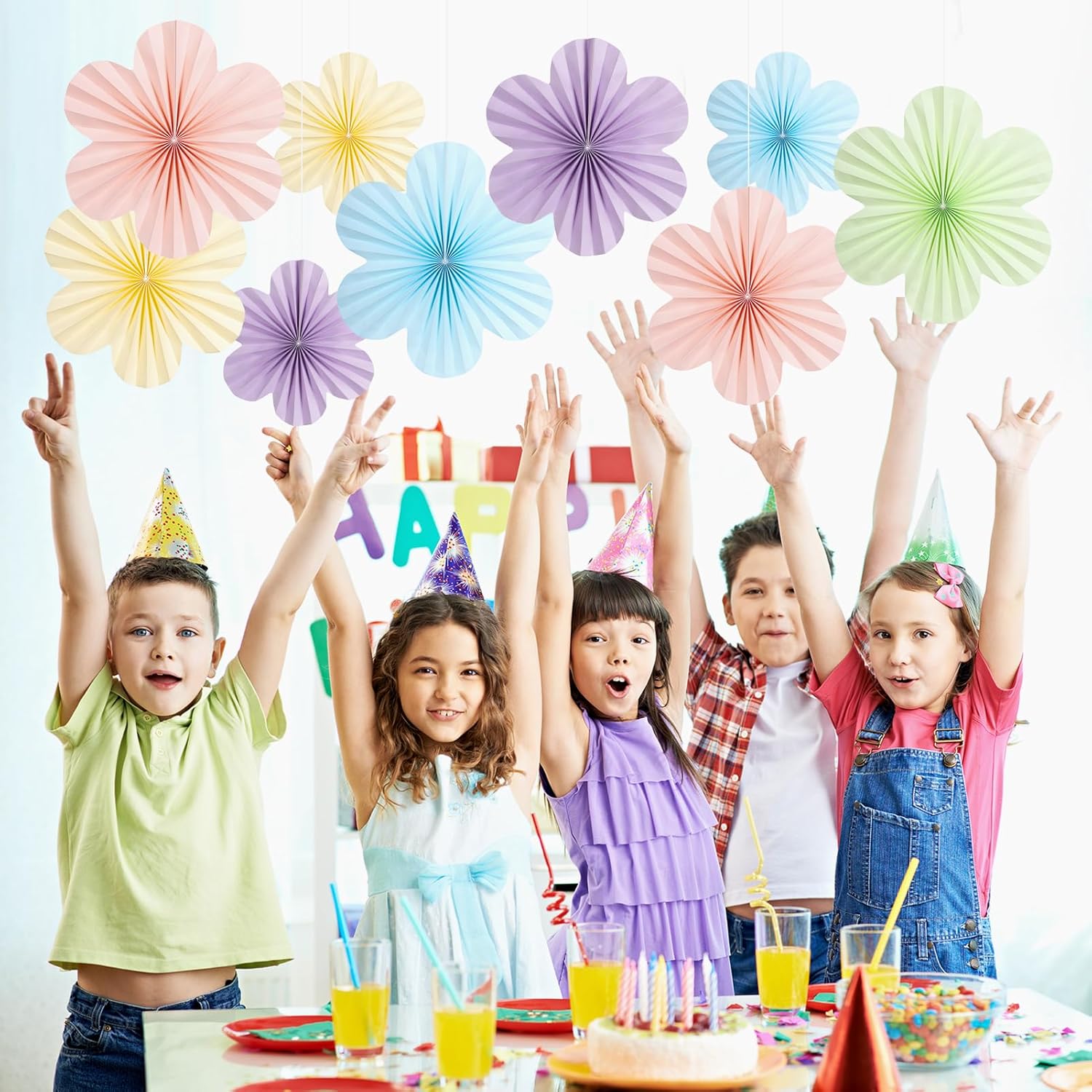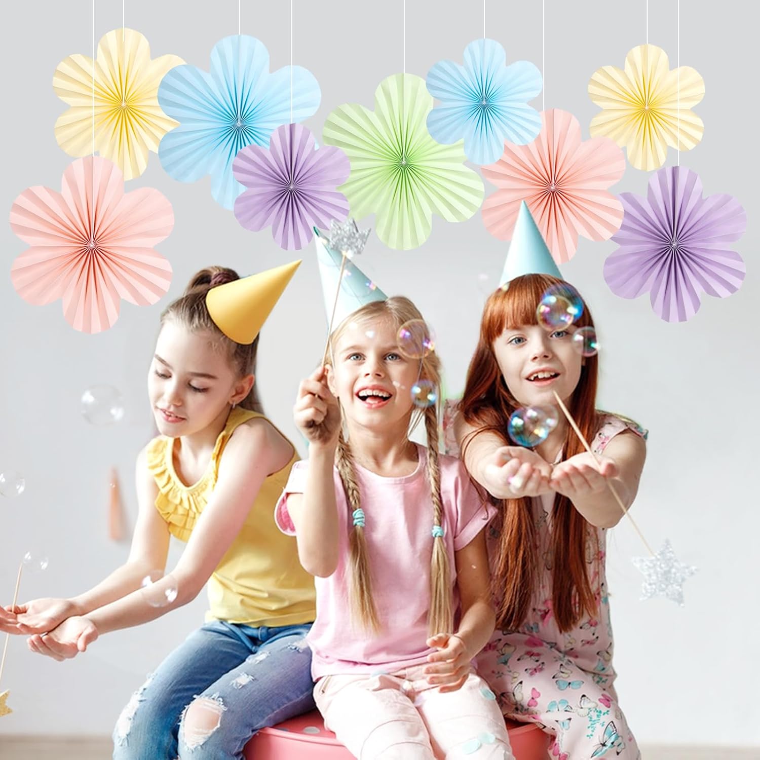 SUNBEAUTY 9 PCS Pastel Paper Flowers Decorations for Wall Paper Fans Classroom Decoration Paper Floral Backdrop Decor Paper Fans Decoration