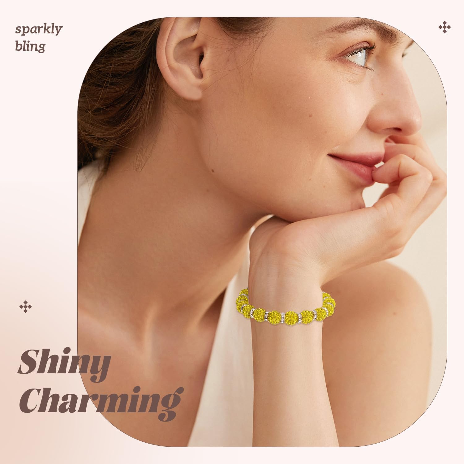200pcs 10mm Rhinestone Beads for Jewelry Making, Yellow Shiny Round Disco Ball Beads Bulk, Sparkle Crystal Clay Christmas for Bracelet Baseball Necklace Earring Crafting and DIY