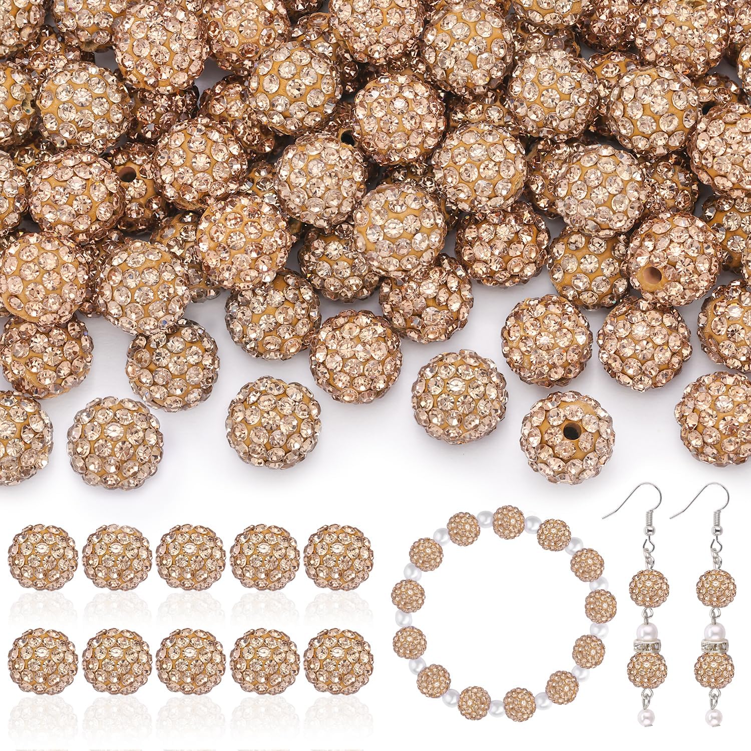 160pcs 10mm Rhinestone Beads for Jewelry Making, Light Brown Shiny Round Disco Ball Beads Bulk, Sparkle Crystal Clay Christmas for Bracelet Baseball Necklace Earring Crafting and DIY