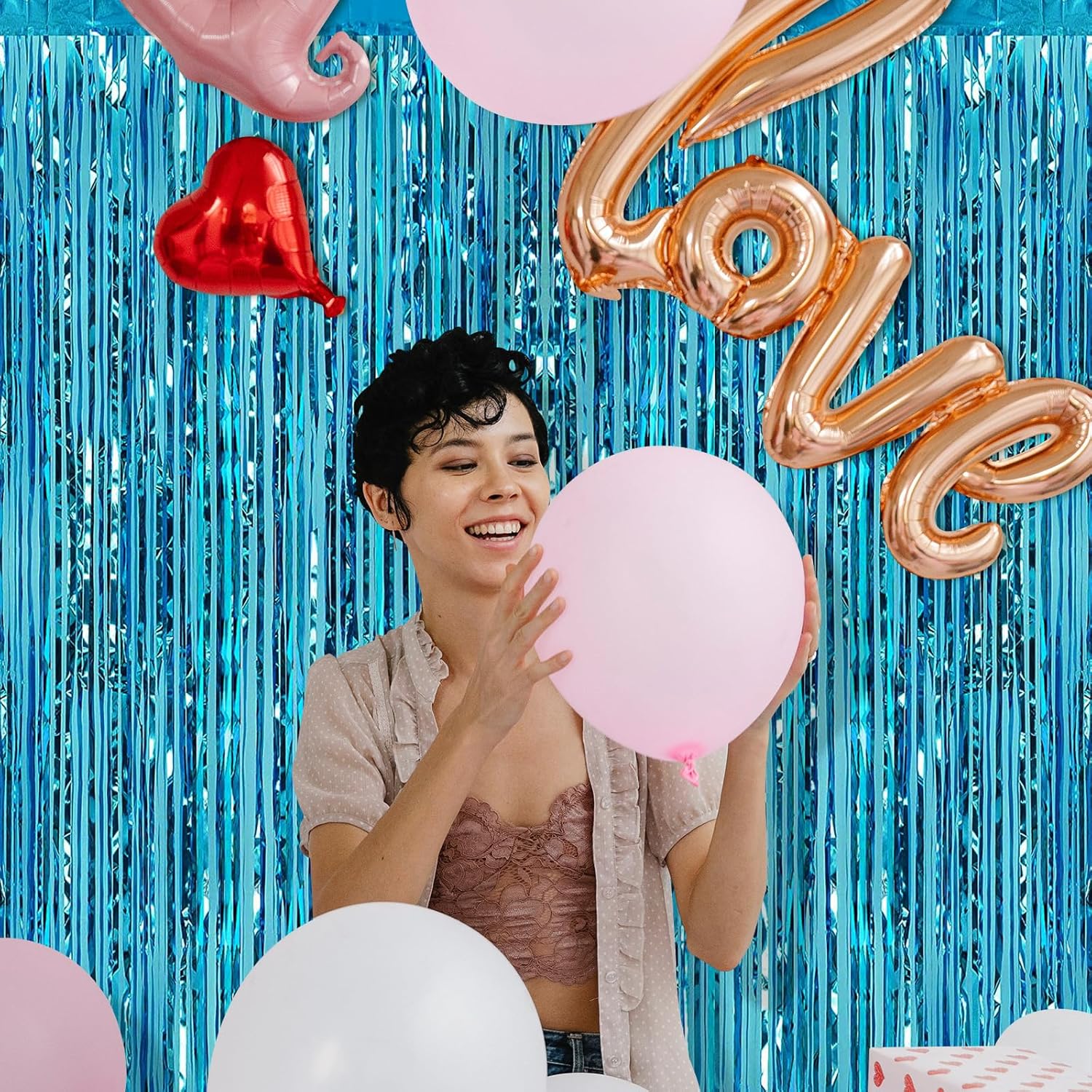 5 Pack Blue Fringe Backdrop 3.2ft x 8.2ft Teal Blue Foil Fringe Curtains Party Tinsel Curtain Backdrop Streamers for Birthday Party Decoration Wedding Christmas Decoration (Teal Blue)