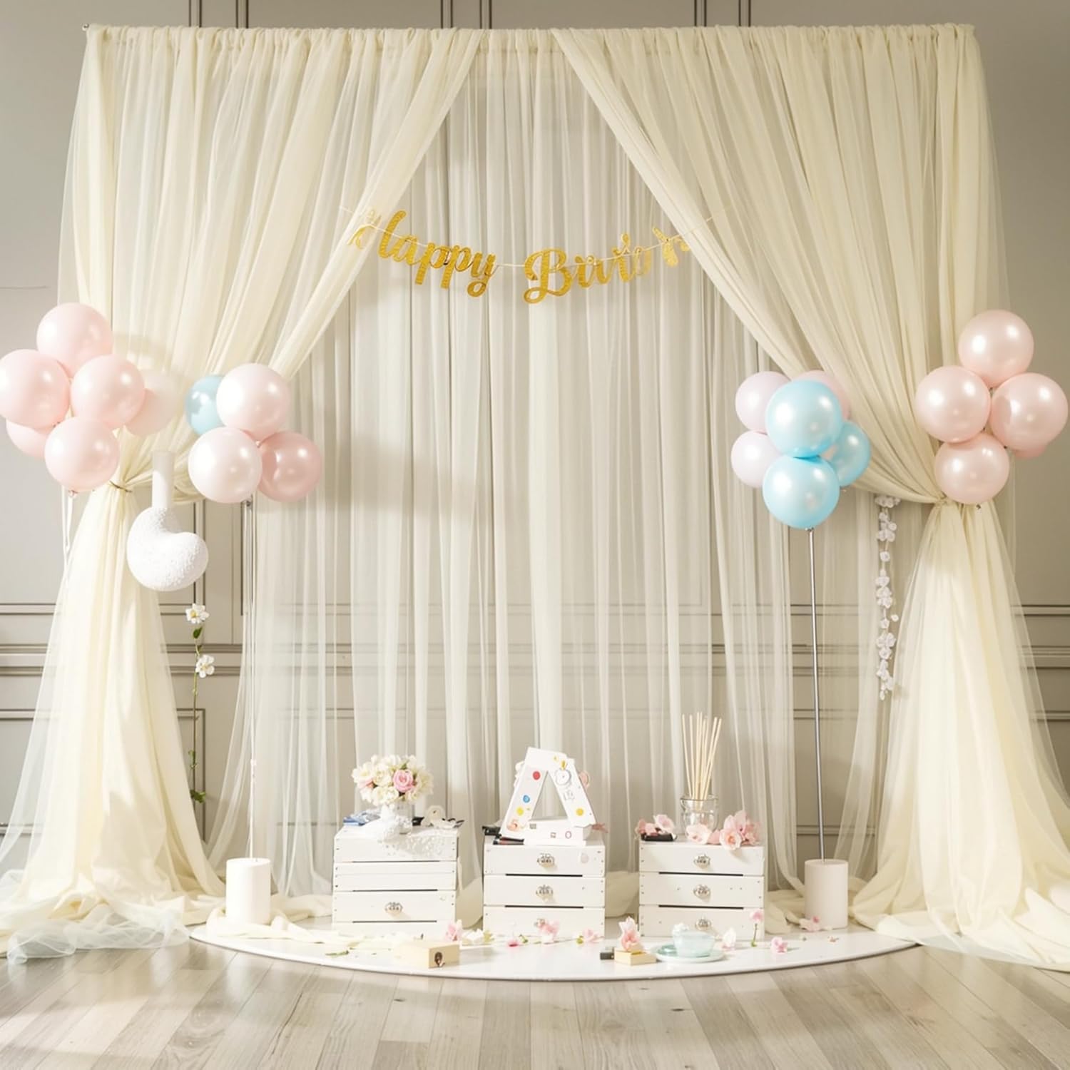 - Ivory wedding backdrop wide range of use : Elegant ivory sheer backdrop curtain is perfect for parties, bridal shower, baby shower, wedding backdrop for ceremony, wedding backdrops for reception, birthday party, photo booth, candy buffets, dessert tables, photography, graduation party, wedding arch draping fabric decorations, home decorations.