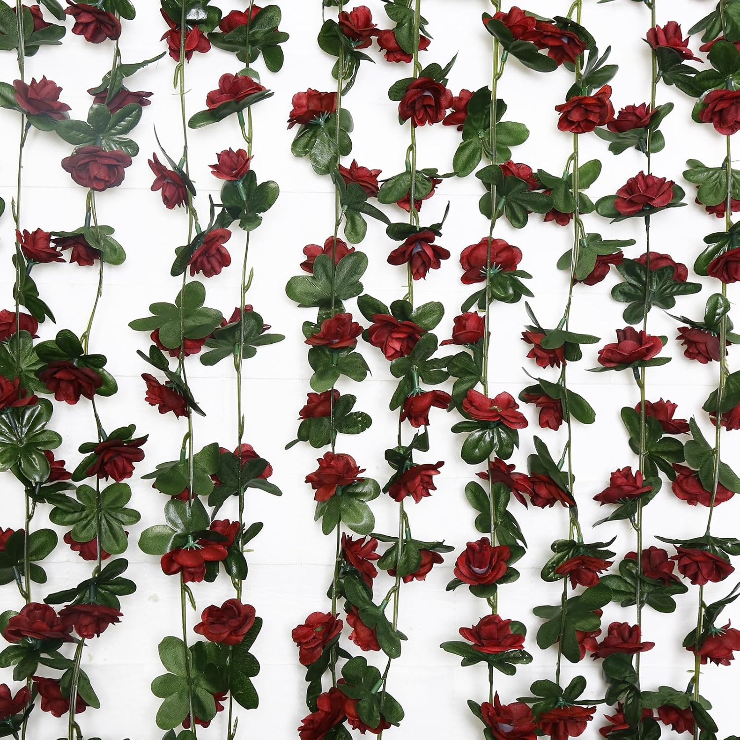 - Packaging: Includes 12 artificial flower garland, each with 45 wine red silk roses and 45 leaves