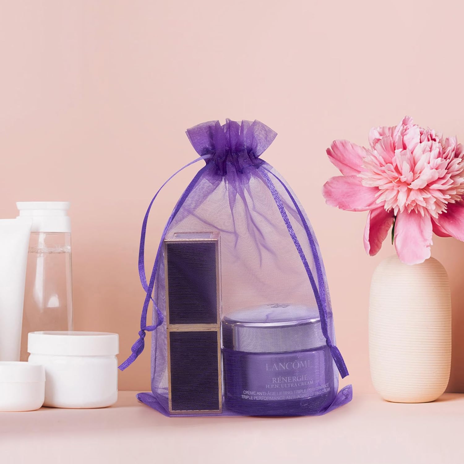 Organza Bags 6x9 Inch, 50 Pcs Premium Mesh Gift Mesh Bags Drawstring for Sachet Jewelry Party Favor (Purple)