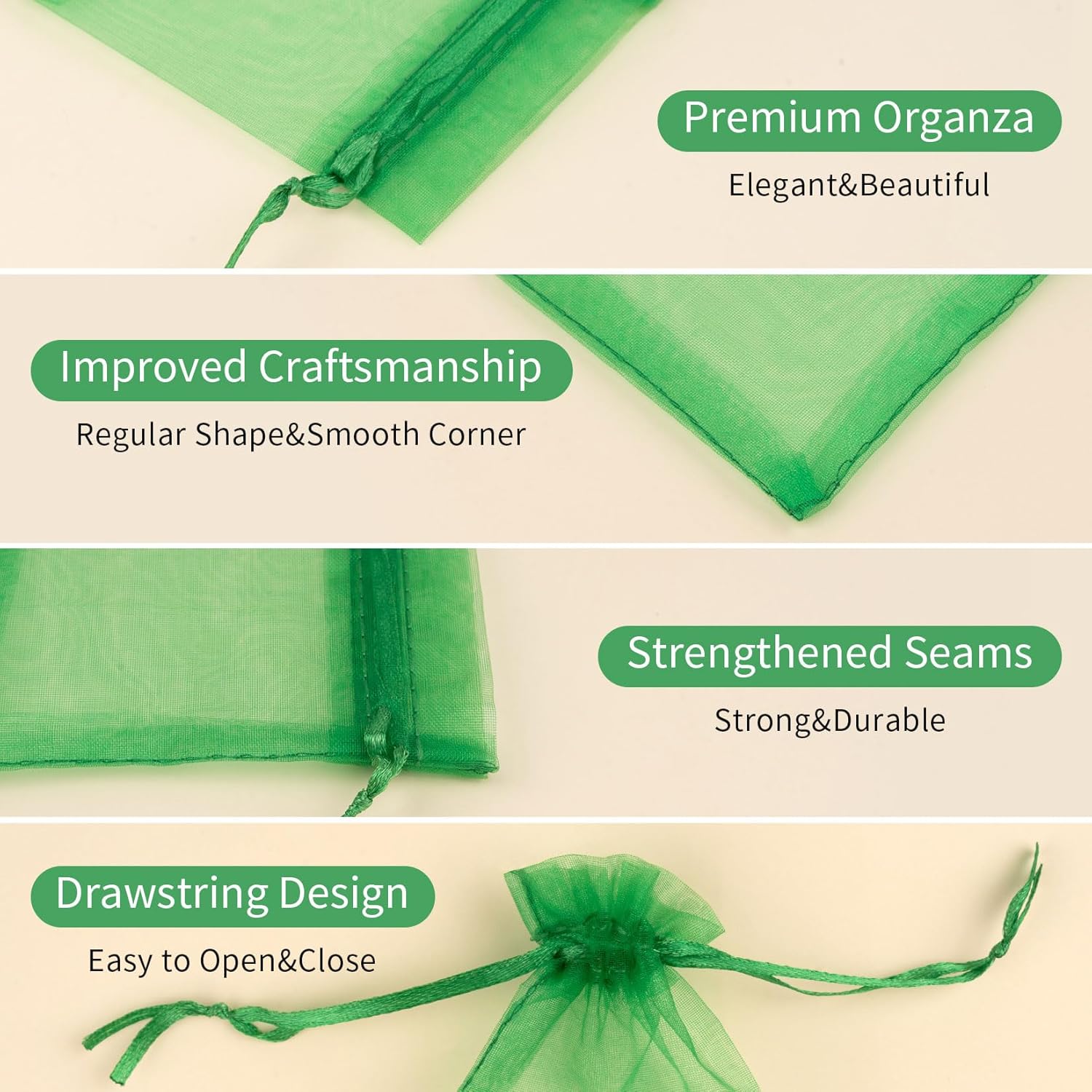 - Package Details: Package comes in 50 pcs green organza bags, with a size of 5x7 inch, offering a practical and stylish solution for organizing and presenting small items.