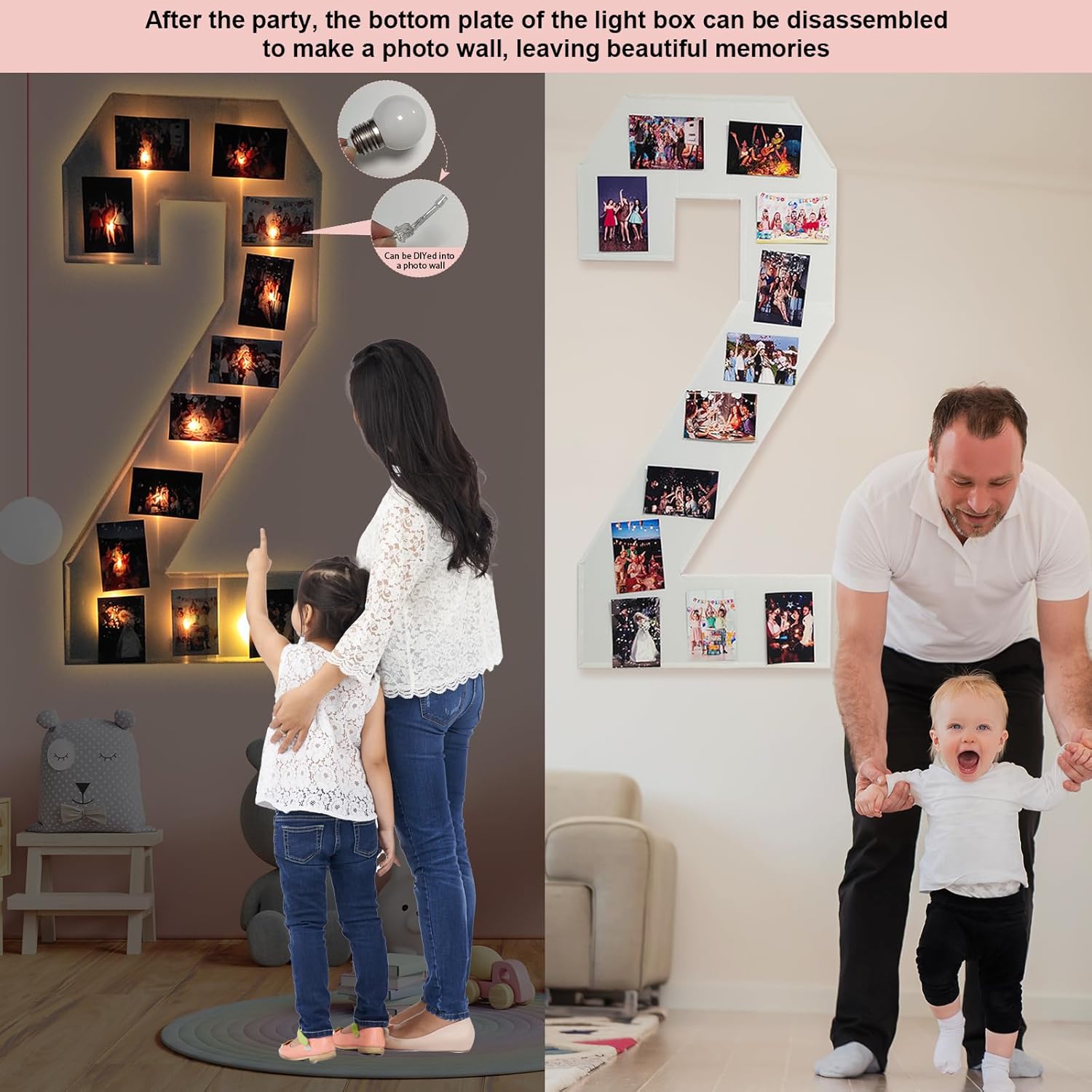 - Party and Memories Display: These light up numbers for party not only add atmosphere to your party, but also can be transformed into Photo Display Board for Wall after the party, and photos of the party can be posted on it. It is an ideal way to display the beautiful memories of graduation, wedding or birthday party, and can also be used as decoration for home, office, dormitory or cafe, and can also be used for festive occasions such as Christmas and Halloween.
