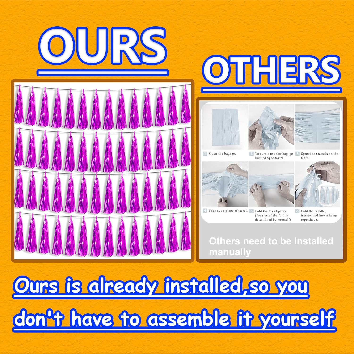 - 【Package Includes】The total length of the hot pinke gold birthday tassels banner is 40 feet, divided into 4 strips, each 10 feet long. Each banner contains 15 tassels, and each tassel measures 14 inches, for birthday decorations many occasions uitable for Patriotic display, Homecoming Float, Christmas Float, ecorative metal trailers, graduation floats etc