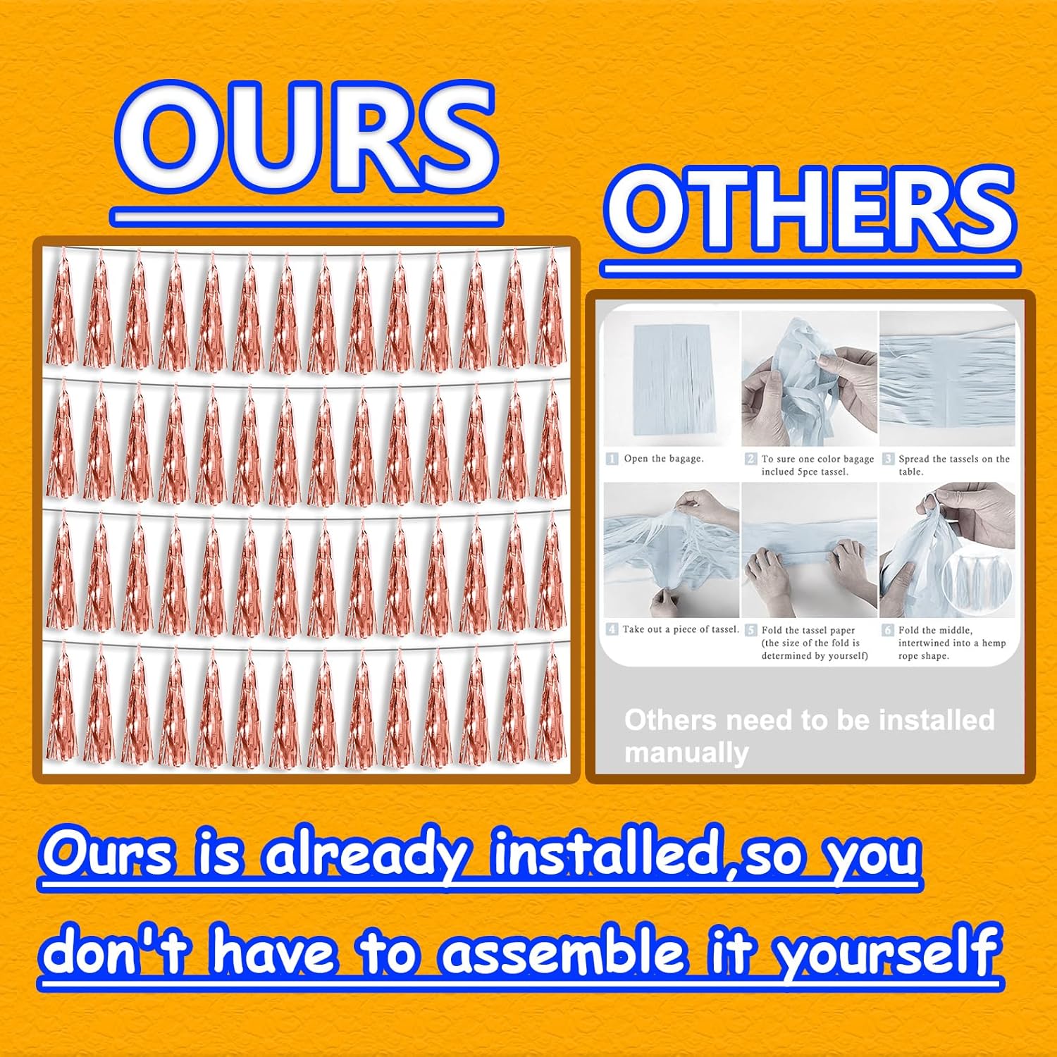 - 【Package Includes】The total length of the rose gold birthday tassels banner is 40 feet, divided into 4 strips, each 10 feet long. Each banner contains 15 tassels, and each tassel measures 14 inches, for birthday decorations many occasions uitable for Patriotic display, Homecoming Float, Christmas Float, ecorative metal trailers, graduation floats etc