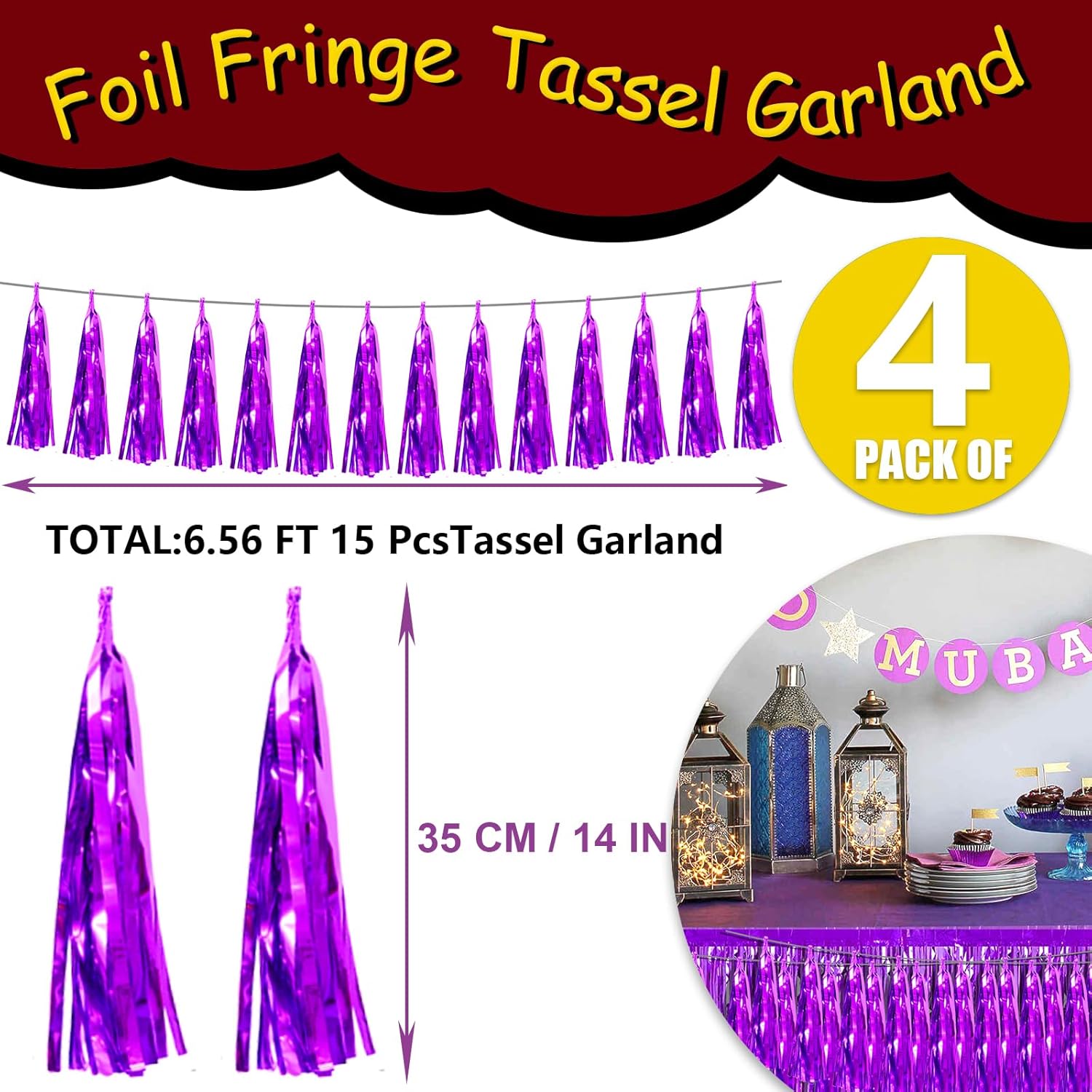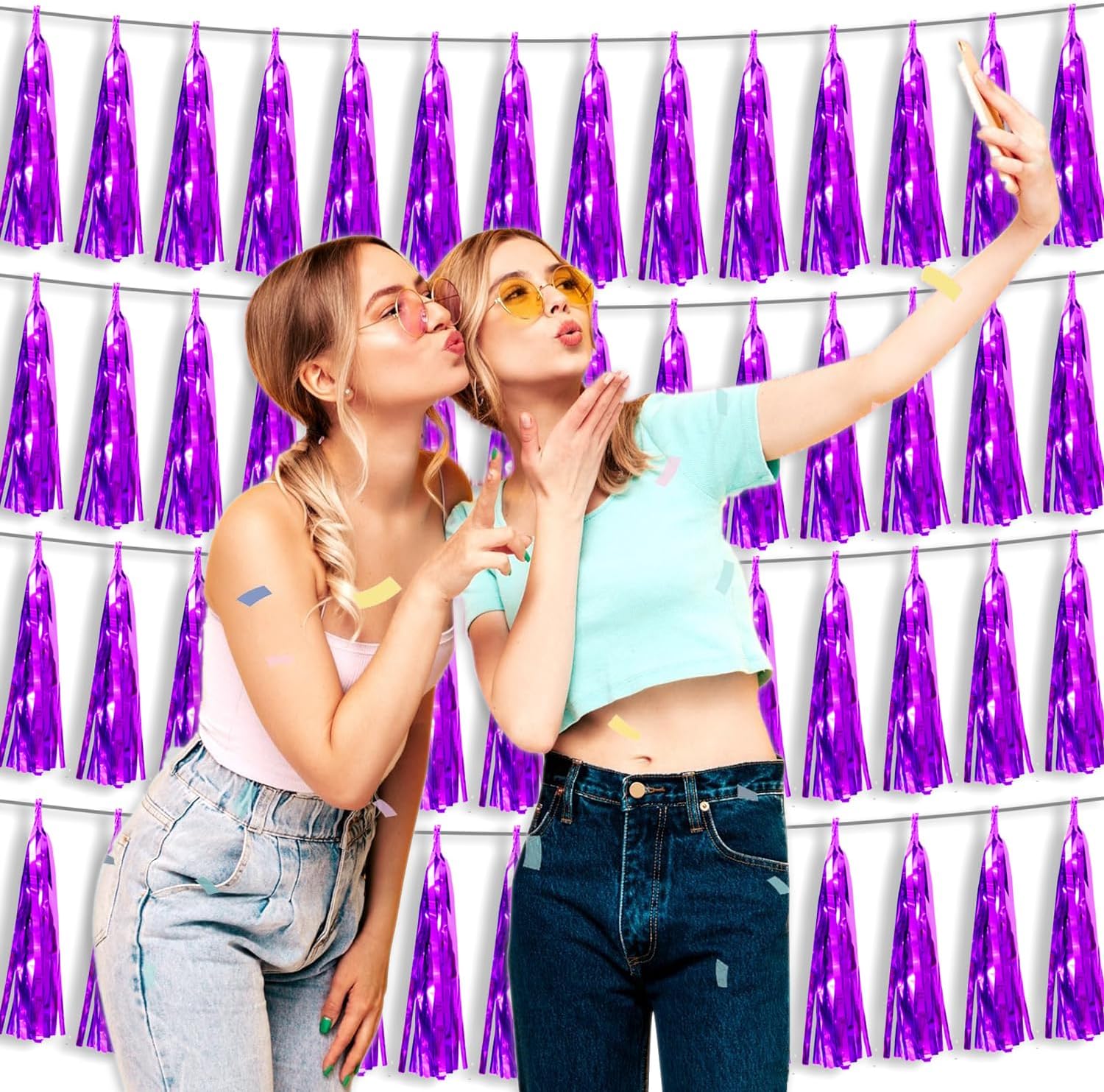 4P Purple Foil Fringe Tassel Banner Garland Metallic Tinsel Streamers Wall Hanging Curtain Backdrop Banner for Parade Floats, 2024 Graduation Decorations, Father's Day Party Decoration