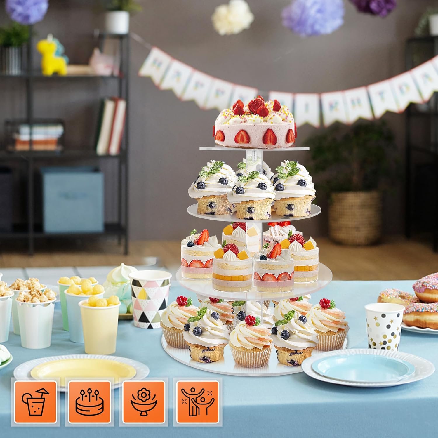 - 【Easy Assembly & Storage】 Our acrylic cupcake stand is simple to put together and take apart with the simple "screw together" design. designed for secure connection and stability. When not in use, it collapses neatly for easy storage. Consider this stand for convenient setup and disassembly