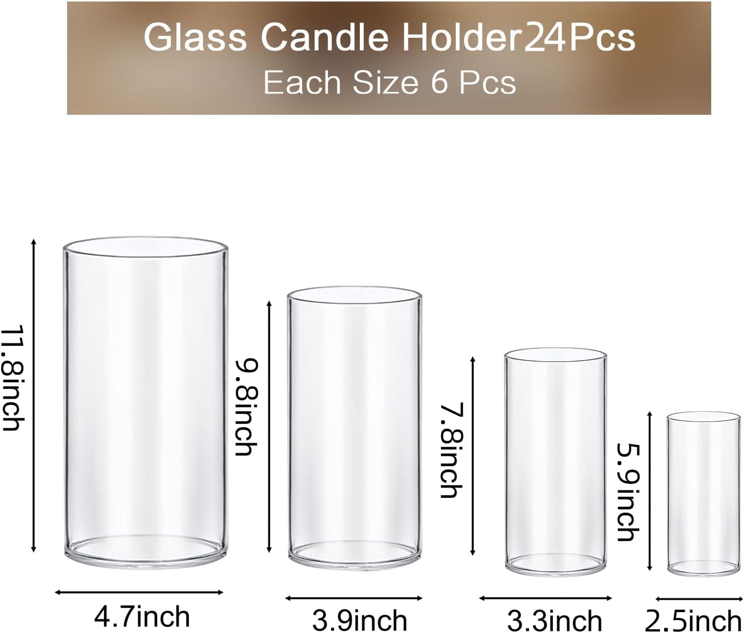 PHOSPHOR 24 PCS Glass Candle Holder - Hurricane & Pillar Candle Holder, Clear Glass Cylinder Vase for Centerpieces, Wedding & Party Decoration