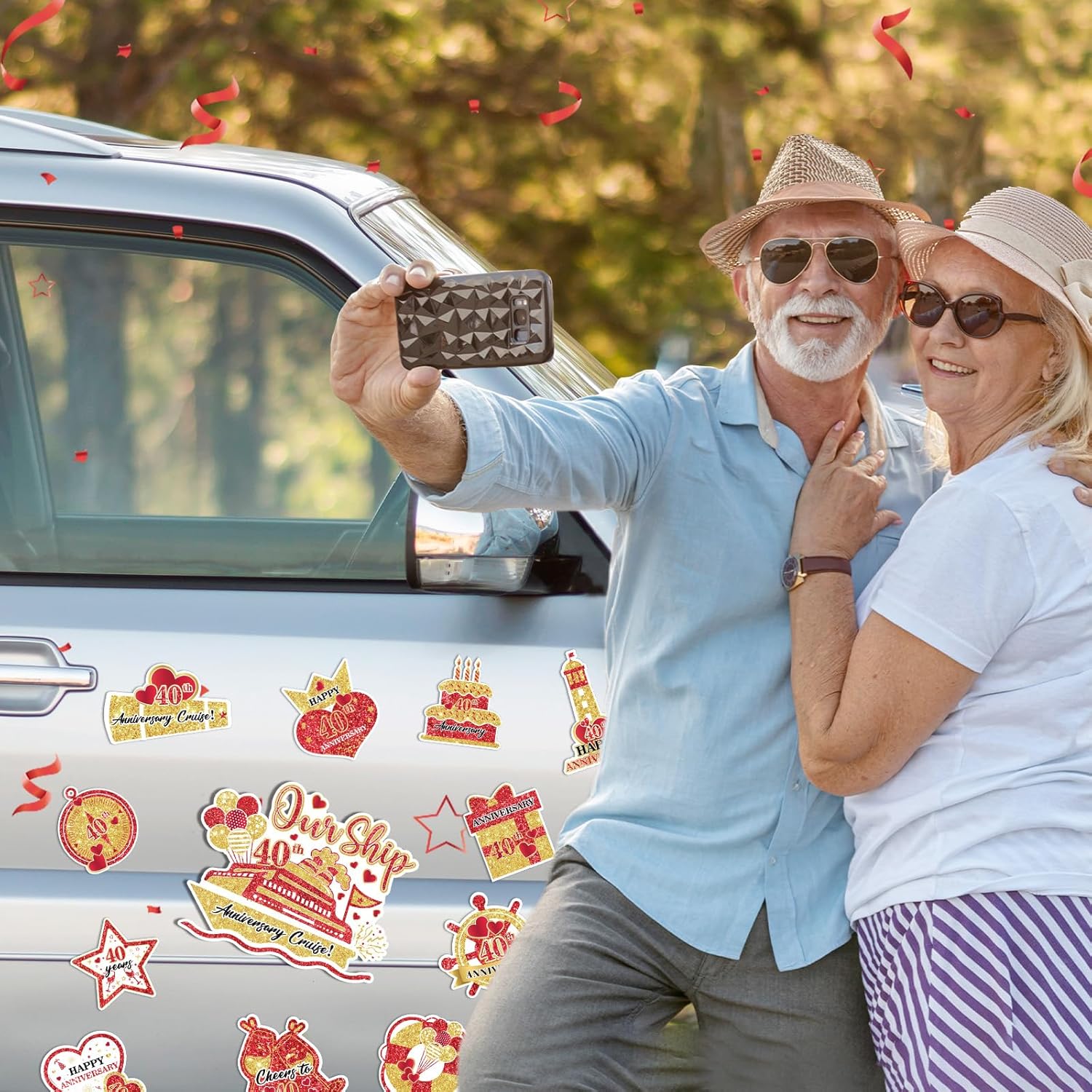 - 💌Cruise Door Magnets Decorations:You will get 16pcs of Red Gold 40th Anniversary Cruise Door Magnets.These 40th Anniversary Cruise Door Magnets have "40th Anniversary Cruise" and many shapes.With these beautiful 40th anniversary magnets decorations, they further set off a atmosphere of 40th anniversary.