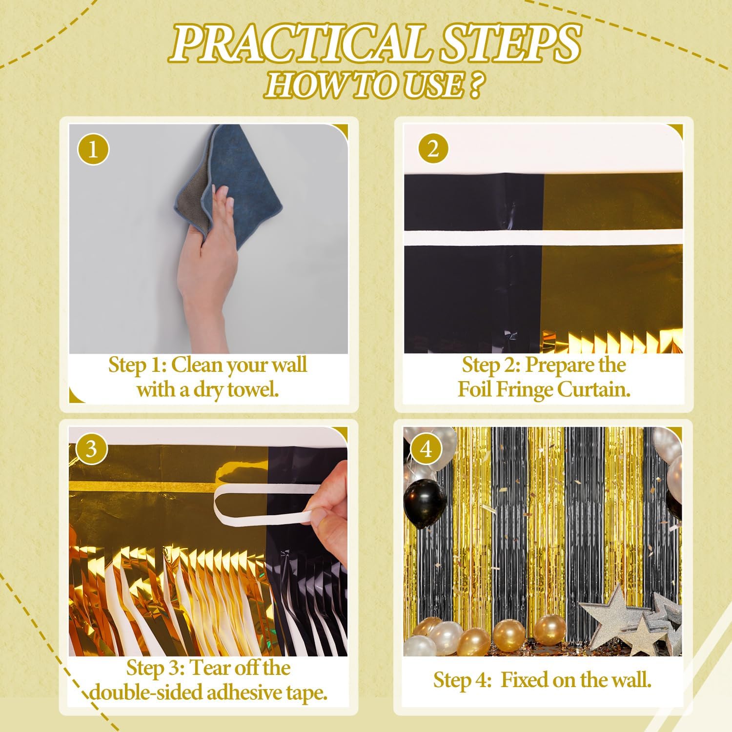 - 【3 Sets of Foil Fringe Curtains】Each package includes 3 sets of 3.3x8.2 ft foil fringe curtains, providing enough length to decorate your party with ease. Perfect for creating a stunning backdrop for any occasion.