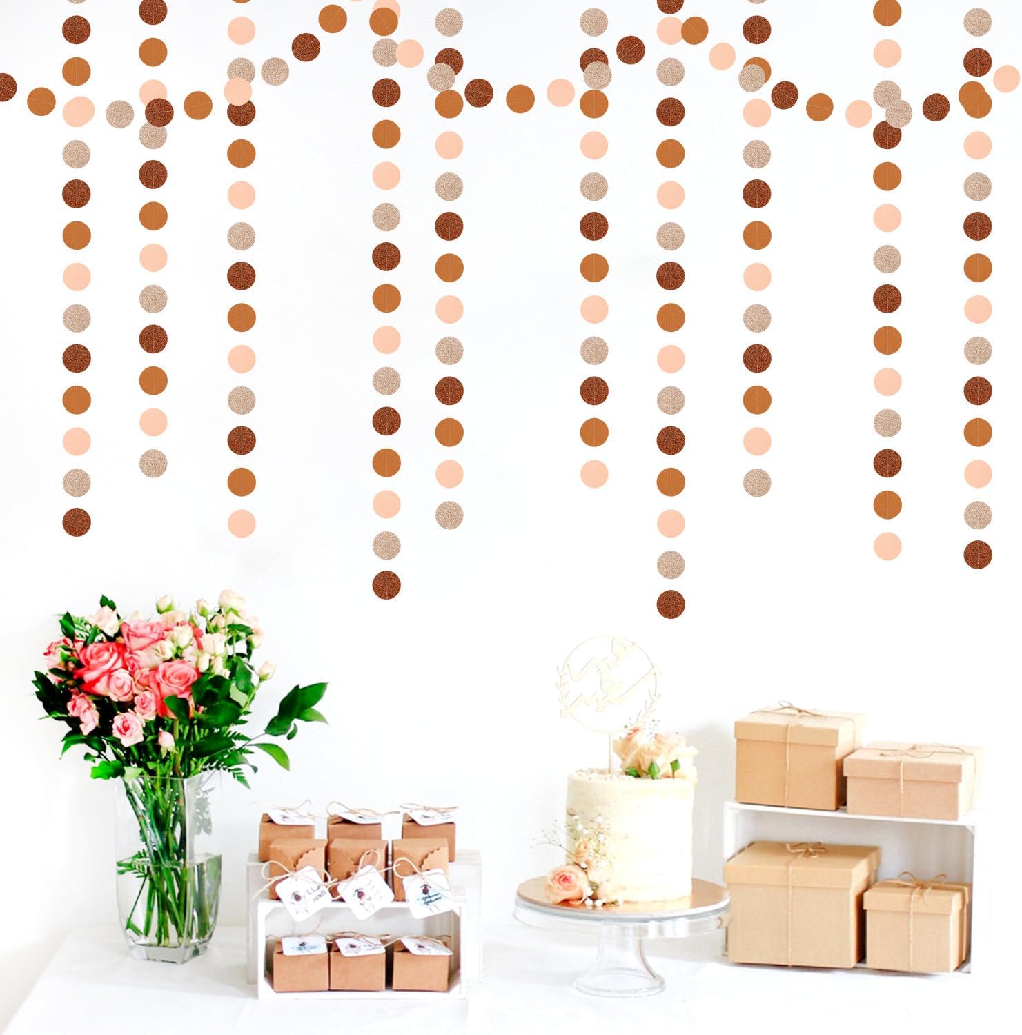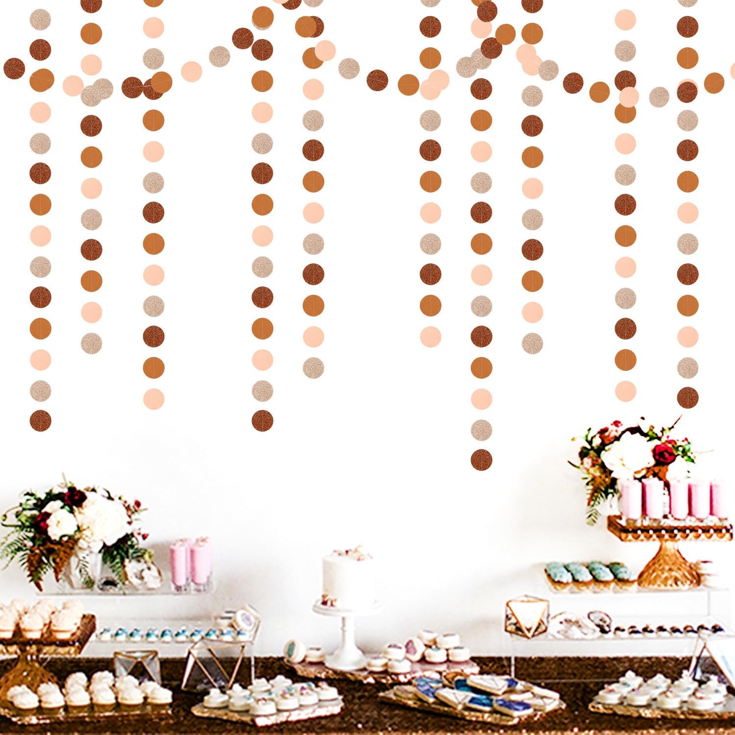 - 【Brown Rose Gold Party Decorations Kit Includes】The party garlands includes 4pcs paper garlands, each backdrop bunting is 13 feet/ 4 meters long, total length is 52 feet/16 meters. Every Banner has 40pcs dots which the size is 2".