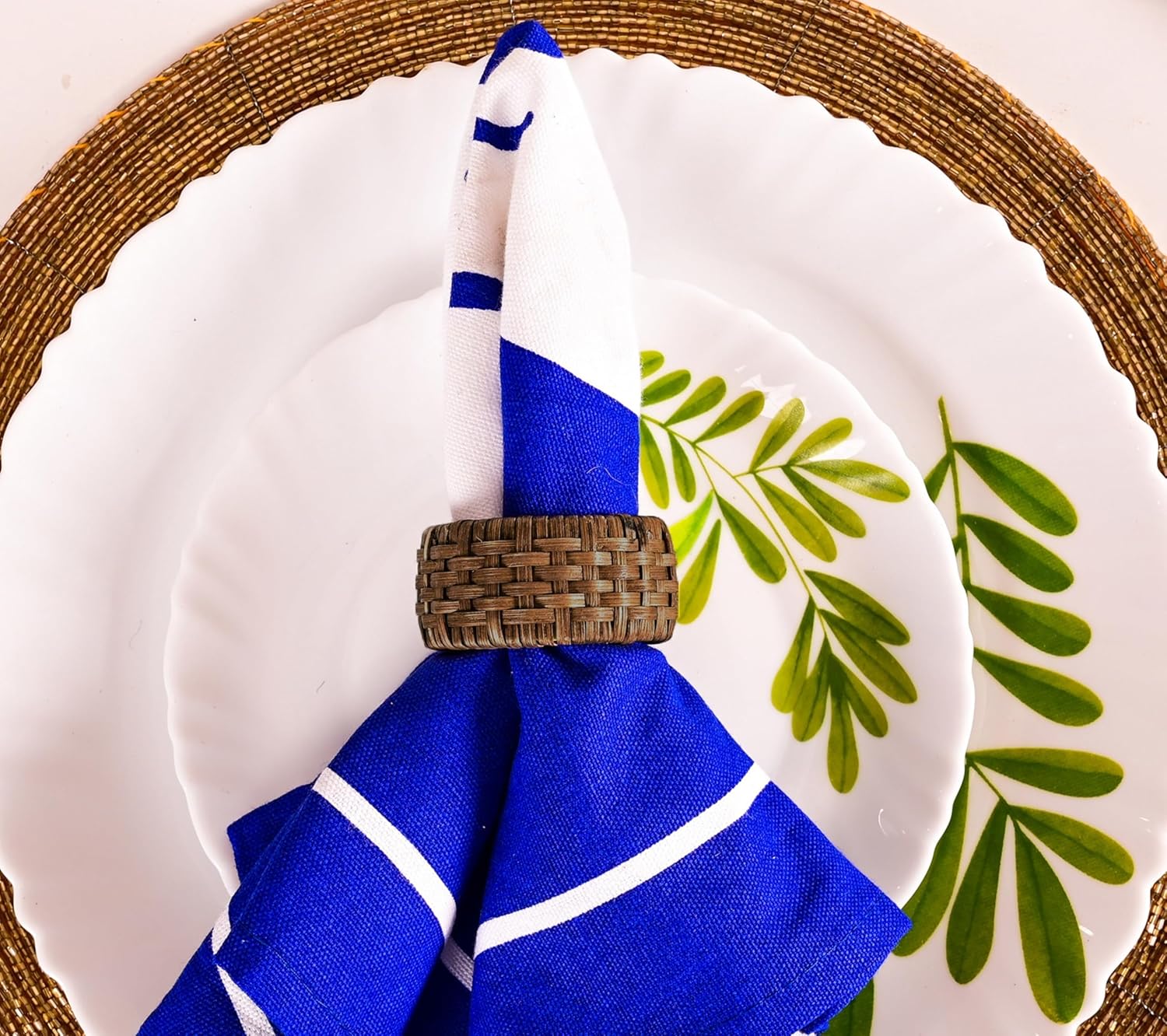 Decorative Cane Napkin Rings Set of 12 - Hand Woven Napkin Holders for Farmhouse, Rustic, Holiday, Wedding, Easter, Thanksgiving, Xmas, Boho & Fall Table Décor (Walnut) - CLEENTABLE