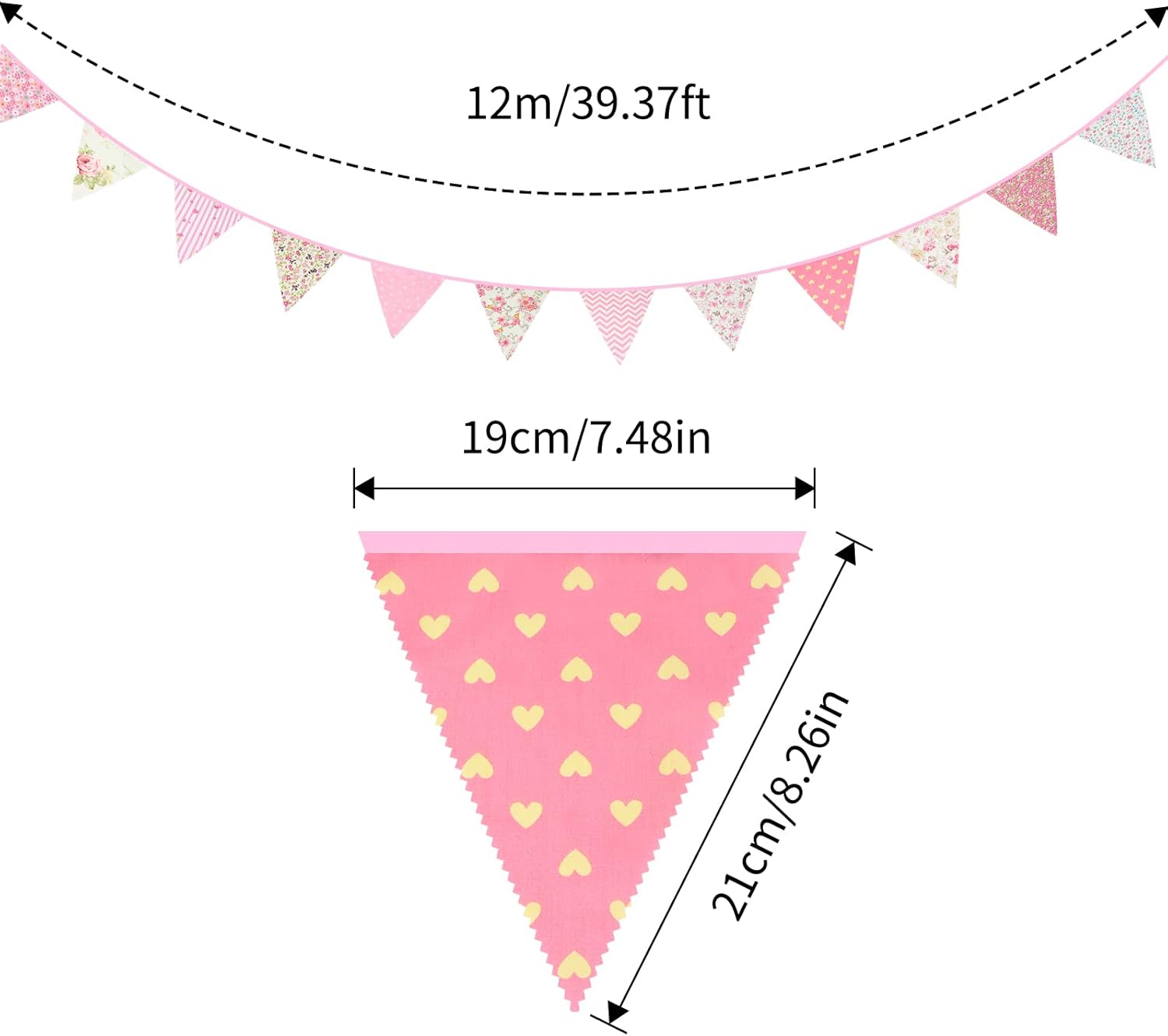 - 【Perfect for Any Celebration】Add a touch of elegance and charm to your events with the jijAcraft 39Ft Triangle Bunting Banner. Featuring 42 pieces of beautifully crafted tea floral cotton fabric flags, this banner is ideal for birthdays, weddings, baby showers, and more.