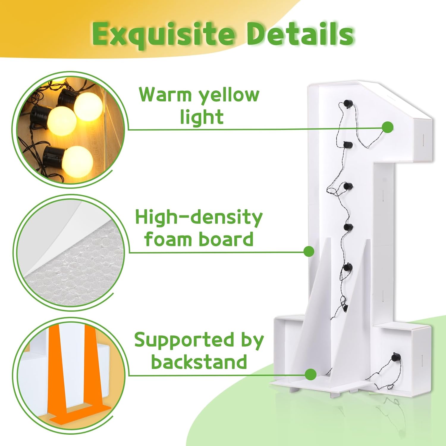 - Equipped with 2 Yellow Light Strings: Large marquee numbers include matching light strings, so you can say goodbye to the annoyances of incompatible light strings.