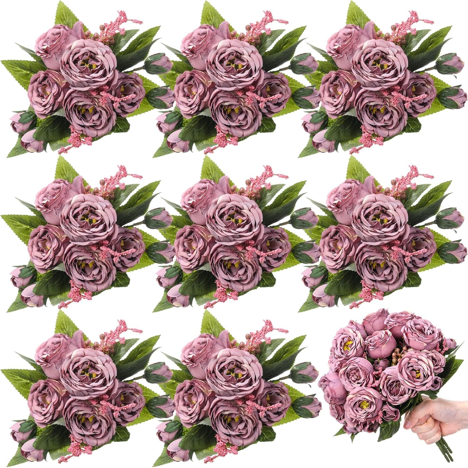 8 Bundles Artificial Peonies Flowers Boho Faux Flowers Arrangements Artificial Centerpiece Spring Bouquet Floral Wedding Decoration for Vase(Dark Purple)