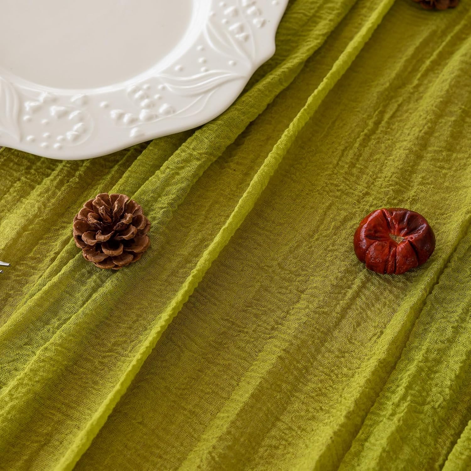 Moss Green Cheesecloth St Patricks Day Table Runner Gauze 120 Inch 10 FT Rustic Boho Cheese Cloth Runner for Wedding Baby Shower Bridal Shower Long Sheer Home Decorations